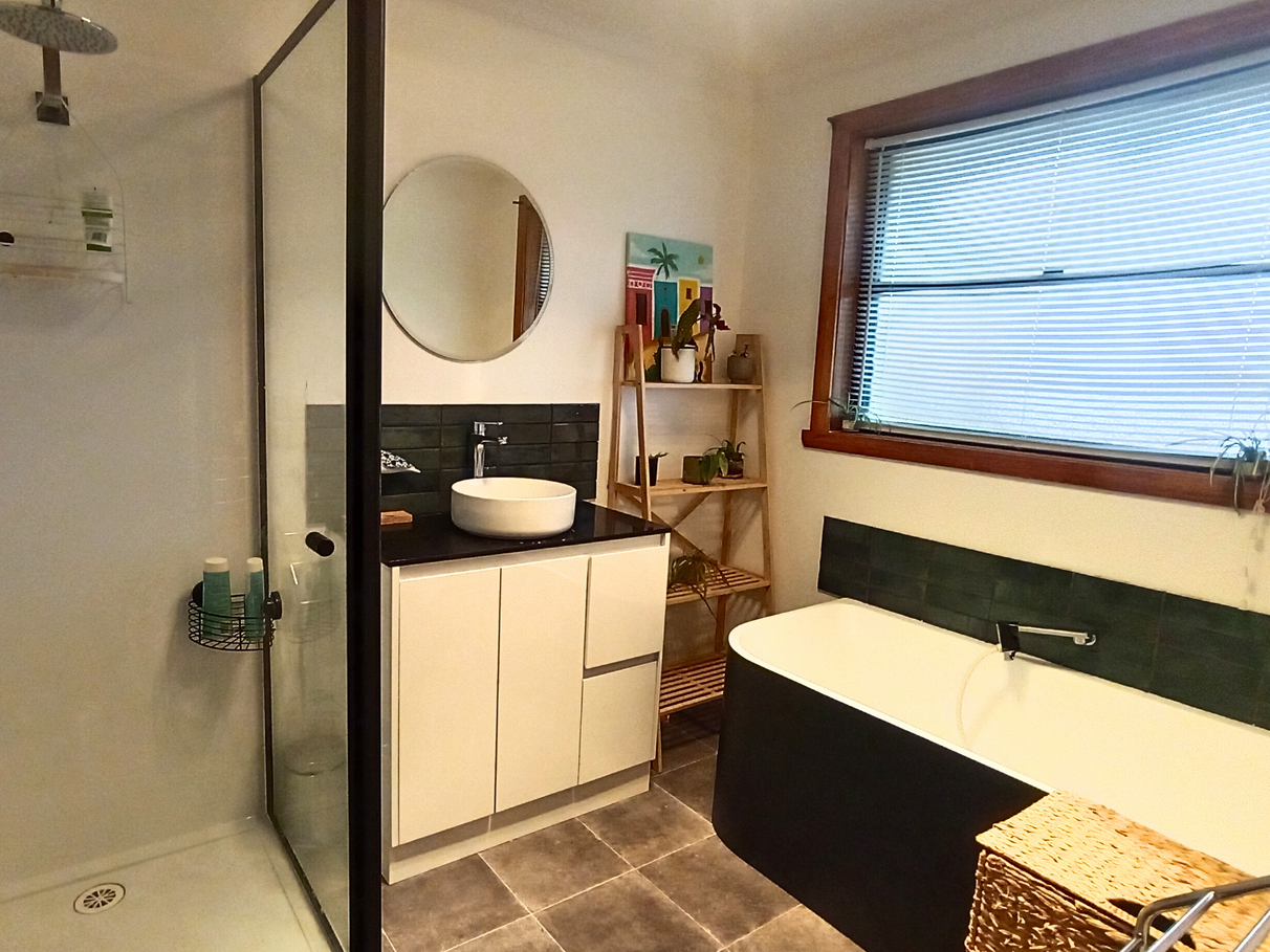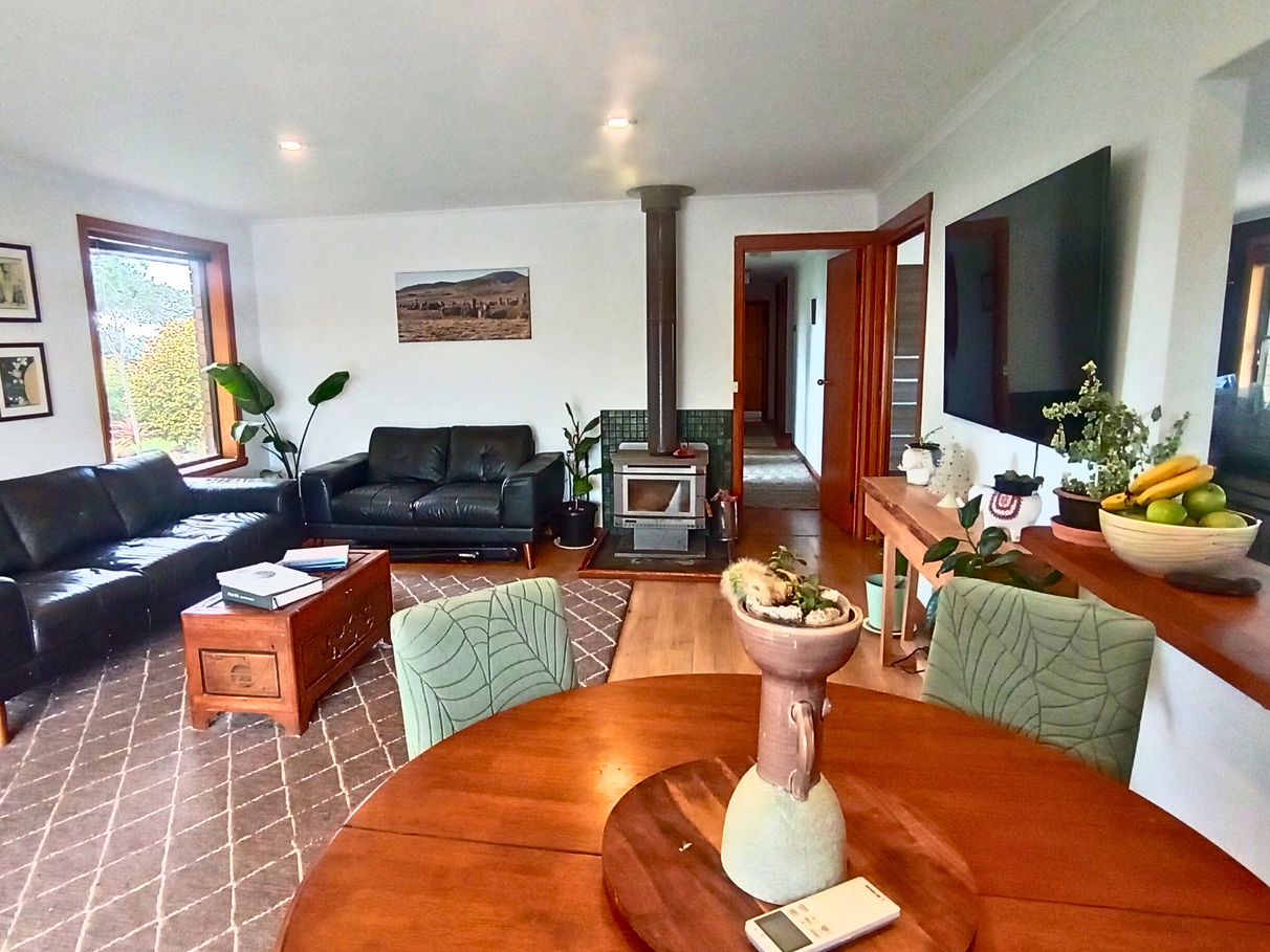 Wood heater, open fireplace and reverse-cycle heat pump for year-round comfort.