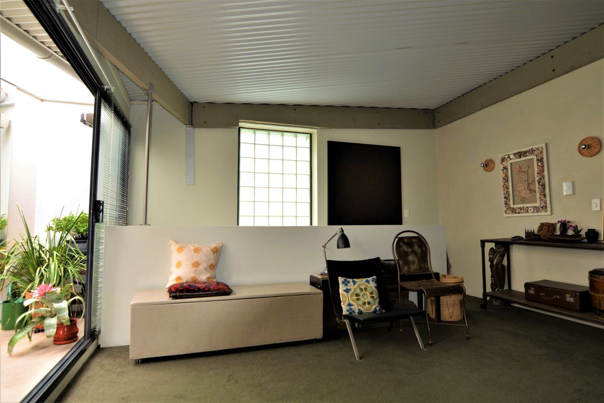 This townhouse-style apartment, over three levels of an original workshop/warehouse, presents as a strata terrace with its own private street-level entrance.