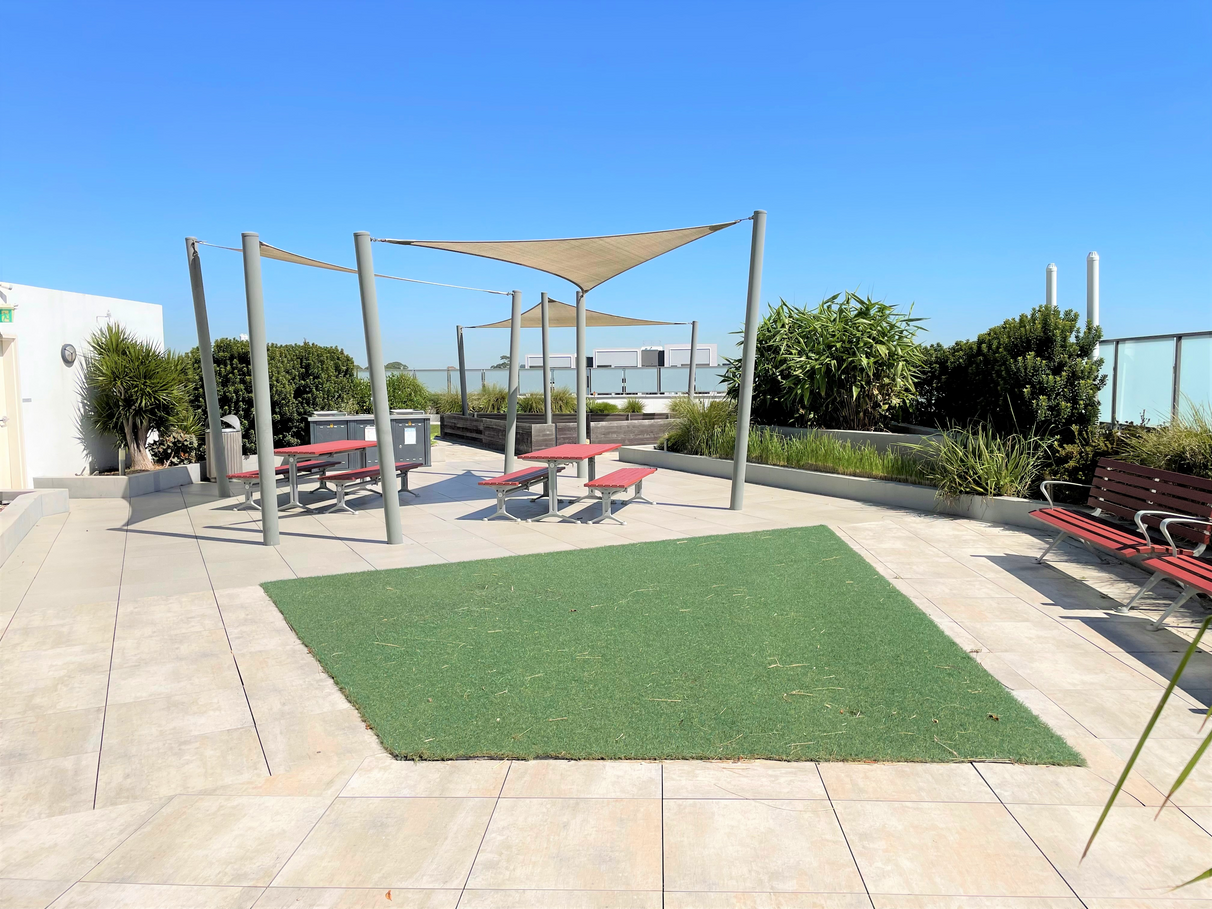 - rooftop terrace on level 8 in the building, and level 1 garden