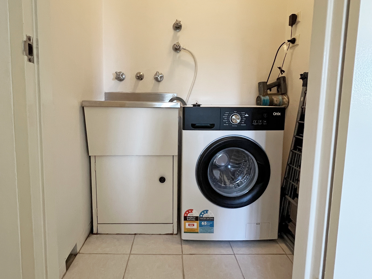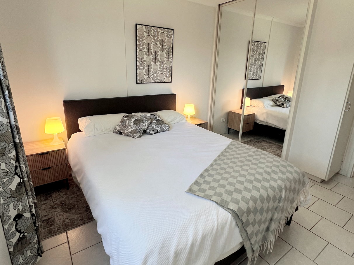 Separate fully tiled bathroom with generous storage (not an ensuite – making it convenient when entertaining)