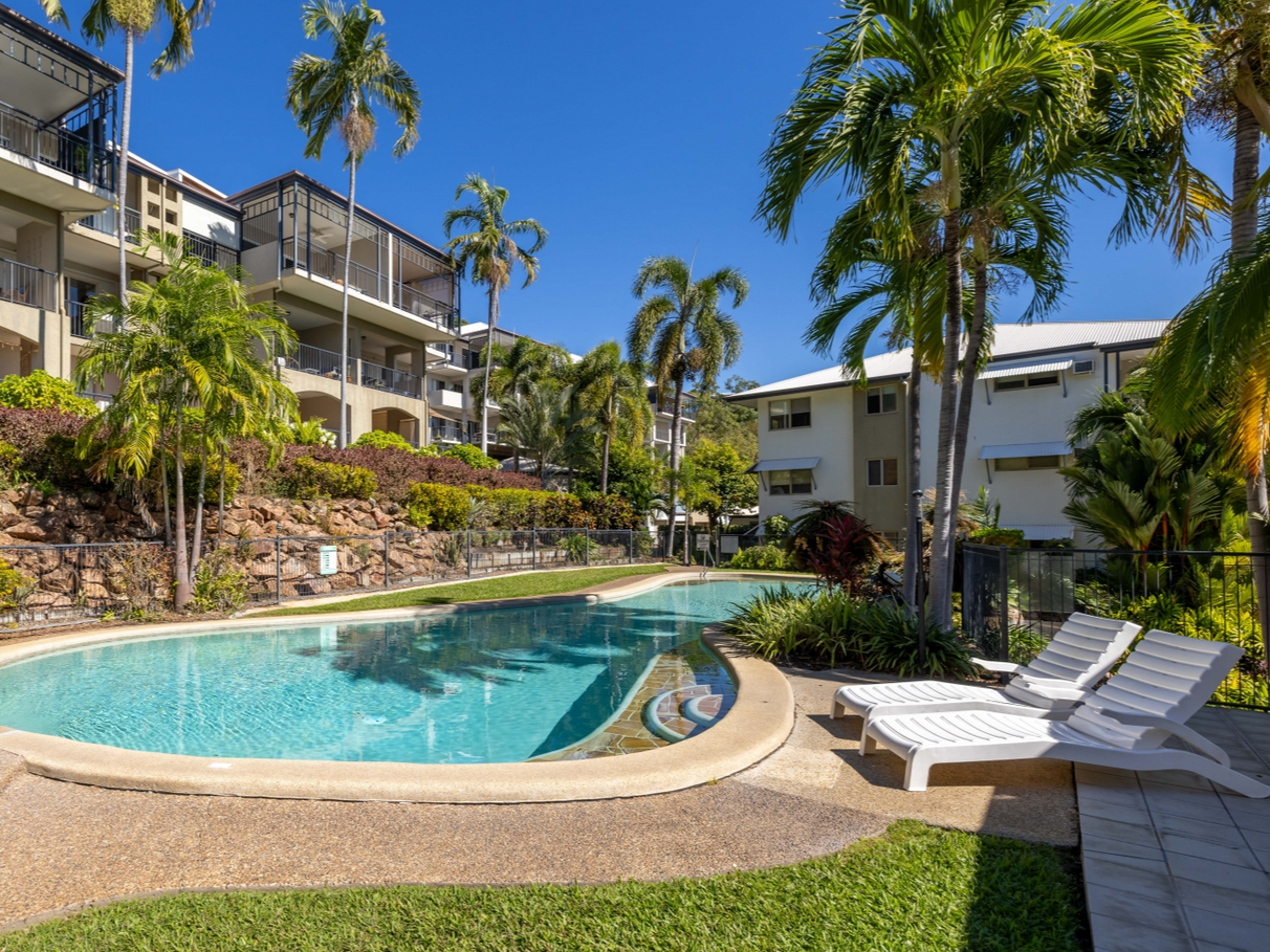 Unit One in Waterview Terraces, a spectacular apartment complex in Townsville's highly sought Belgian Gardens, has so much to recommend. Just a few short meters in from the complex entrance, is the small undercover carpark, catering for just the residents in Block A. Up a short flight of steps into the apartment, you will enjoy one of the easiest and fastest access from car to home that exist here at Waterview! Displaying the typical layout of most 3-bedroom apartments here, Unit One has had a complete re-paint along with some other upgrades. A wide balcony area overlooks the old putting green with grass and garden surrounds. Inside, three bedrooms all with mirrored robes, two bathrooms, and an open plan living area off the practical kitchen that opens to the balcony. Plus, there is a double linen cupboard, European style laundry with trough, and room for a washing machine and dryer, ceiling fans, large split system aircon and smaller aircons in bedrooms. Waterview Terraces is a stunning apartment complex. Under new management, with a waterfall "infinity" style pool, tennis court, gazebos and open garden area, Waterview is one of the best places to live in Townsville.