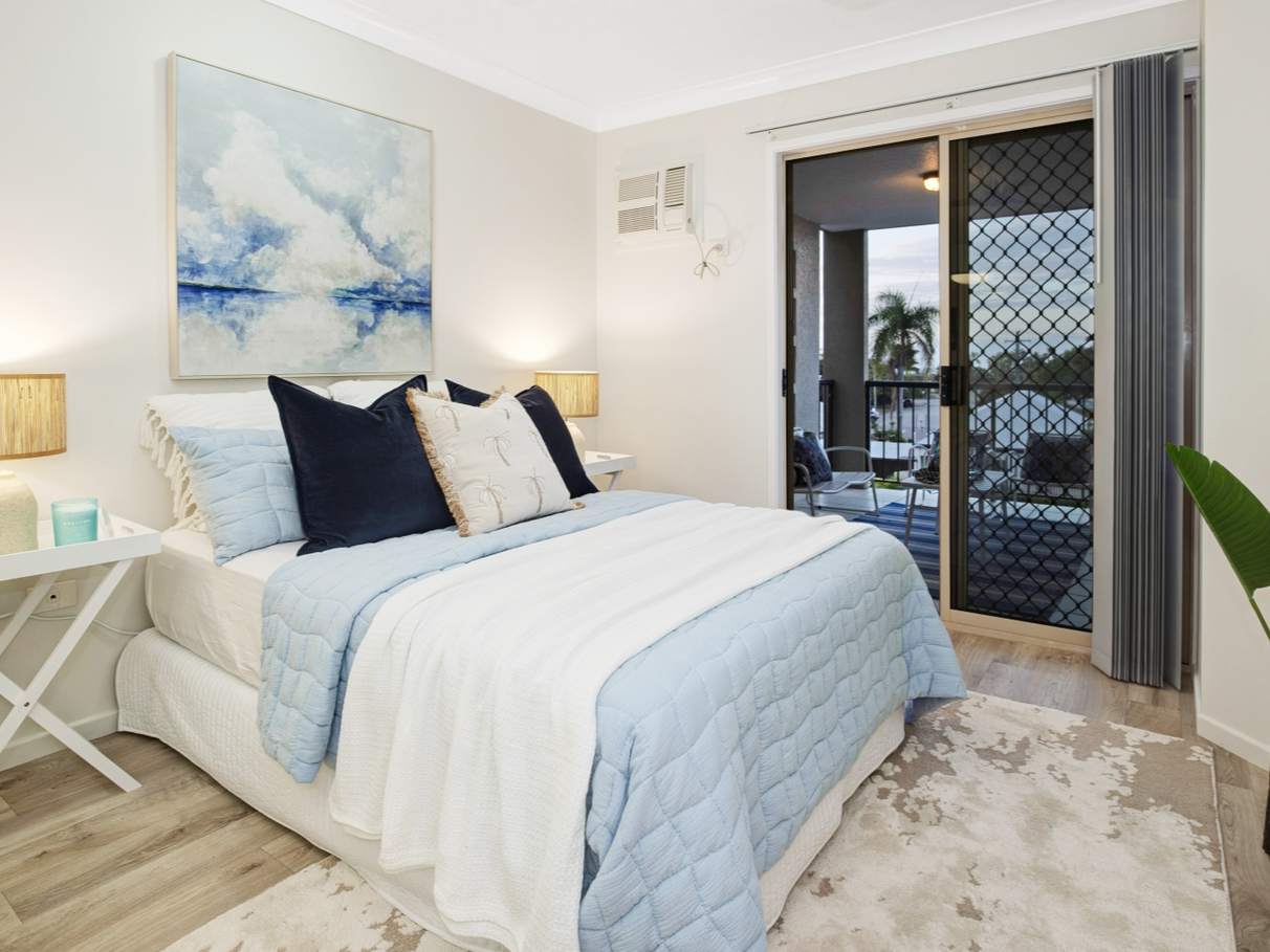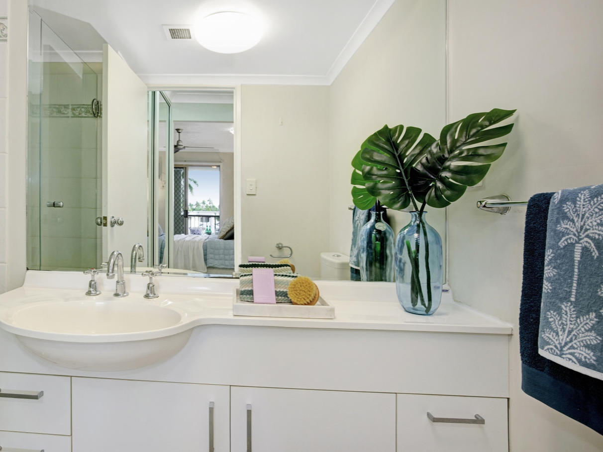 Call Kaz Hughes 0417 516 998 at Waterview Terraces Management Services. Stylish apartment living with full access to beautiful Infinity-style waterfall pool and tennis court! Two queen-size bedrooms with adjoining bathrooms, laundry facility inside, a single lockup garage, and a private balcony to enjoy elevated views across the complex and toward the sea. Neat and clean, in good condition in a complex that's under excellent new management with stunning manicured gardens, security, and open spaces. Pool and tennis court gazebos, close to shops, medical, the Strand, and city.