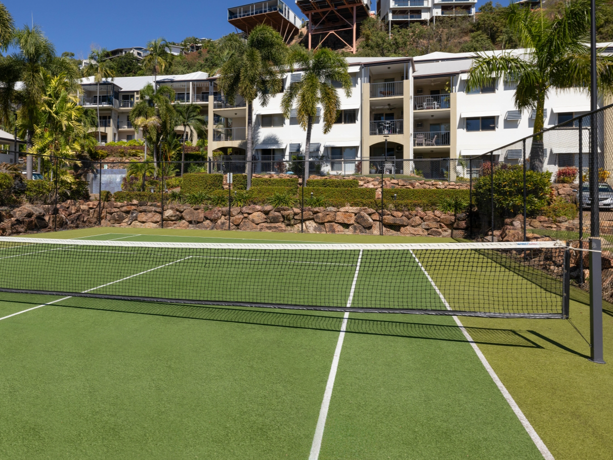 Step inside to discover a brand new kitchen, fresh paint, and bright, spotless bathrooms with windows for natural light and airflow. The sunny north-facing front door brings in lovely light, while the living area overlooks the tennis court through floor-to-ceiling windows, and the pool gate is just a stroll away.