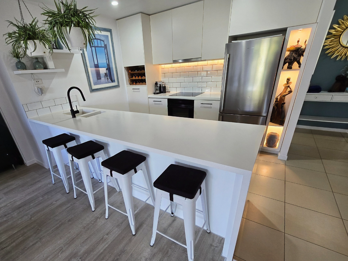 The gathering hub for family life and entertaining with guests flows seamlessly from kitchen, dining and living areas; perfectly connecting through sliding glass door onto easterly facing balcony with stunning outlook to Marina - ideal for sipping your morning cuppa or unwinding at your day’s end enjoying beautiful sunsets with your favourite cool beverage.