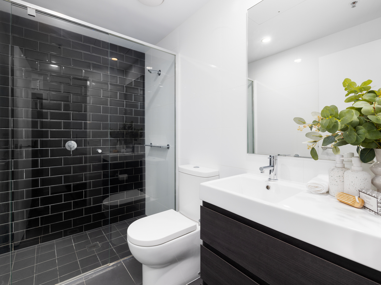 Modern Bathroom: Enjoy a beautifully designed bathroom with a large walk-in shower, stylish fixtures, and a contemporary aesthetic.