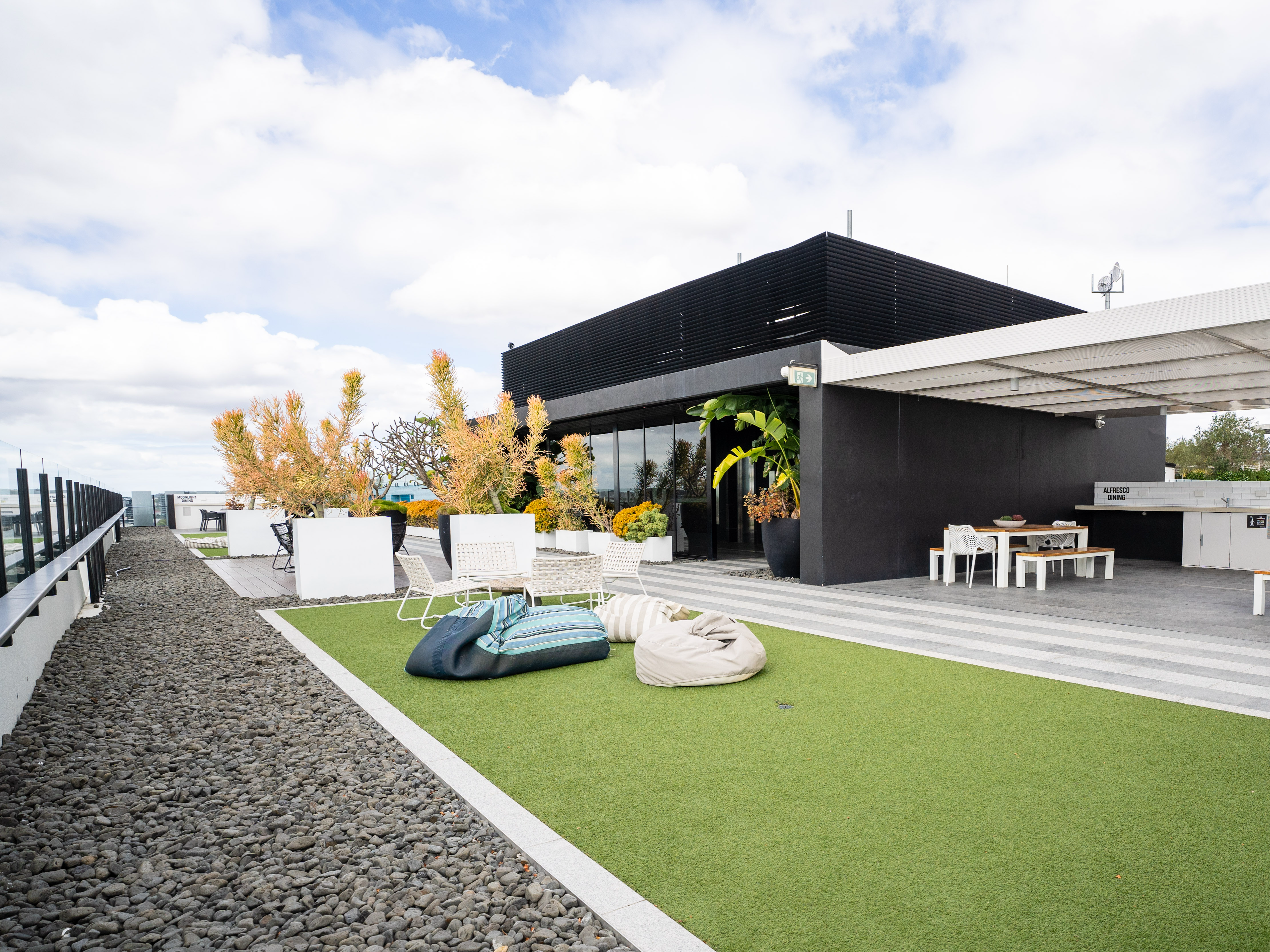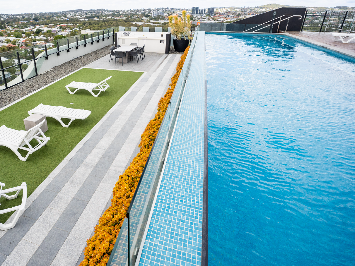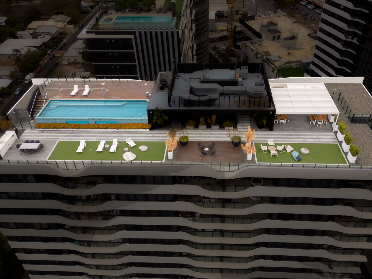 Enjoy incredible panoramic city views from the rooftop that includes a stunning swimming pool, a relaxing lawn, and a BBQ area with private dining areas.