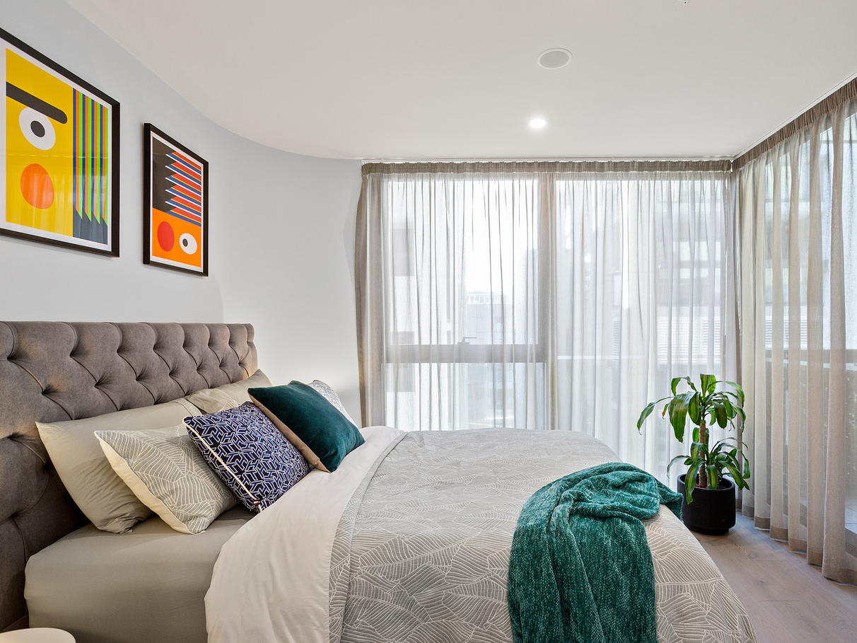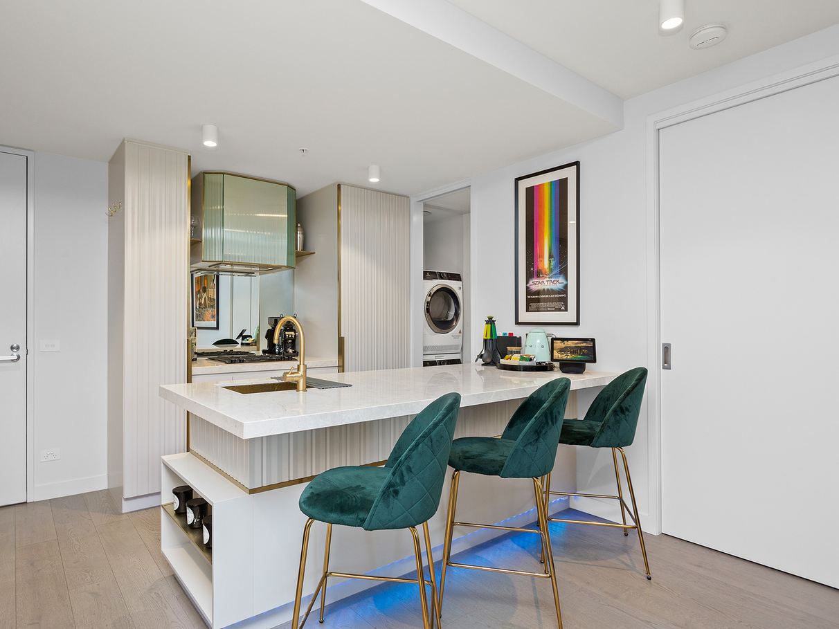 Discover the pinnacle of modern design with this unique, large one-bedroom property, designed by the renowned Melbourne architect Elenberg Fraser. This exceptional one-bedroom property features a spacious and unique layout, a built-in study nook, a separate pantry, an uncompromised open plan living space, a large bedroom with floor to ceiling windows and a secure basement carpark.