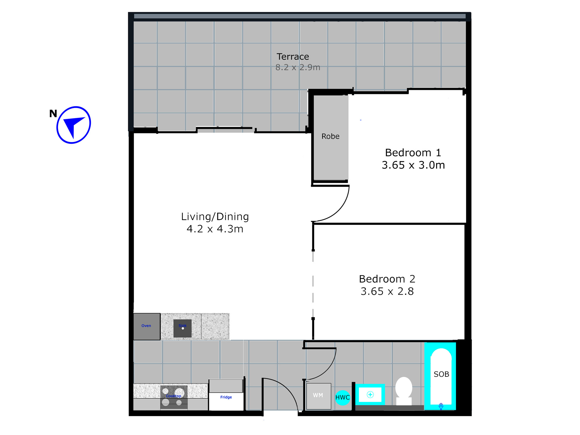 Main bedroom with BIR and terrace access. Second bedroom/study adjoining main living area.