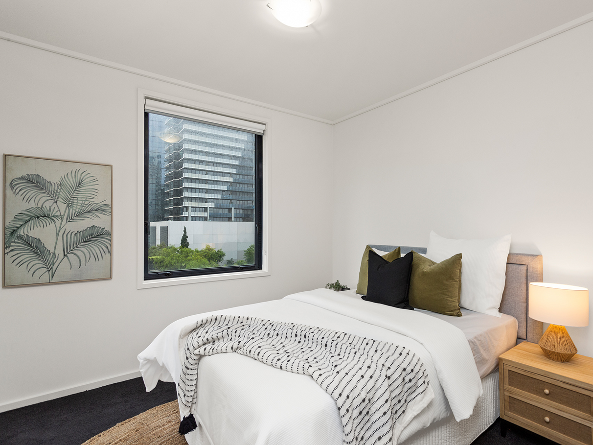 Superb 1 bedroom apartment, offers the convenience of a Tram stop right at your doorstep, providing easy access to the City, Docklands, Port Melbourne and Albert Park. Crown Entertainment Complex is just a skip across the road, with Yarra River, Melbourne Exhibition Centre and South Wharf DFO only a 5 minute walk away.