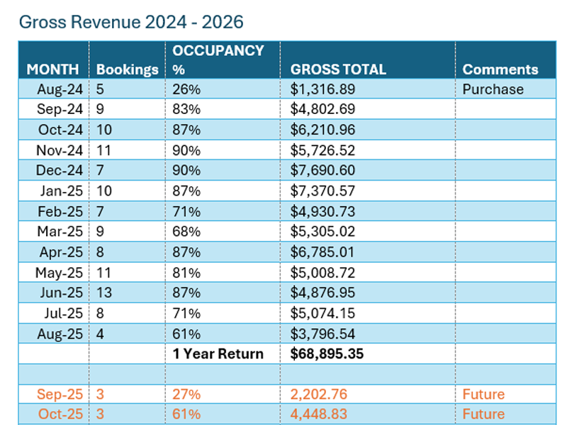 * Proven performer as short term rental; 1 year gross return August 2024 to August 2025 were $68,895; $30,828 in future reservations already!