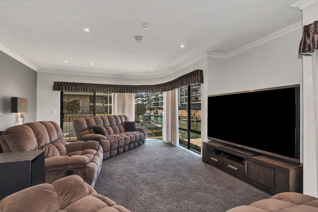 Enjoy space and sophistication with no expense spared. Spread over two well-designed levels, this luxury penthouse ticks all the boxes. Designed with both entertaining and relaxation in mind, the effortless floor plan has been cleverly constructed to take advantage of its ground floor position. Showcasing living spaces on each level and freshly painted interiors complemented by bamboo flooring and a modern colour palette emphasising space and light throughout. All the hard work has been done for you. This executive property comes fully furnished including a 100 inch smart TV downstairs, and a 55 inch smart TV upstairs. Comprising of three large bedrooms, all boasting king-size beds, the master suite includes an ensuite and walk-in robe allowing you to unwind in total bliss. The beautifully appointed kitchen flows out to the living/dining and onto the breezy balcony which overlooks one of two neighbouring parklands creating serenity within. Plus, enjoy boat access right at your front door and regular visits from dolphins!