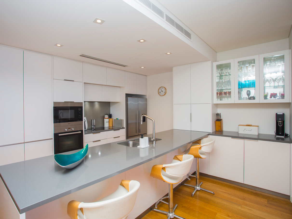 * Modern chef’s kitchen with stone benchtops, high-end appliances and ample storage. Enjoy cooking while looking out at the ocean
