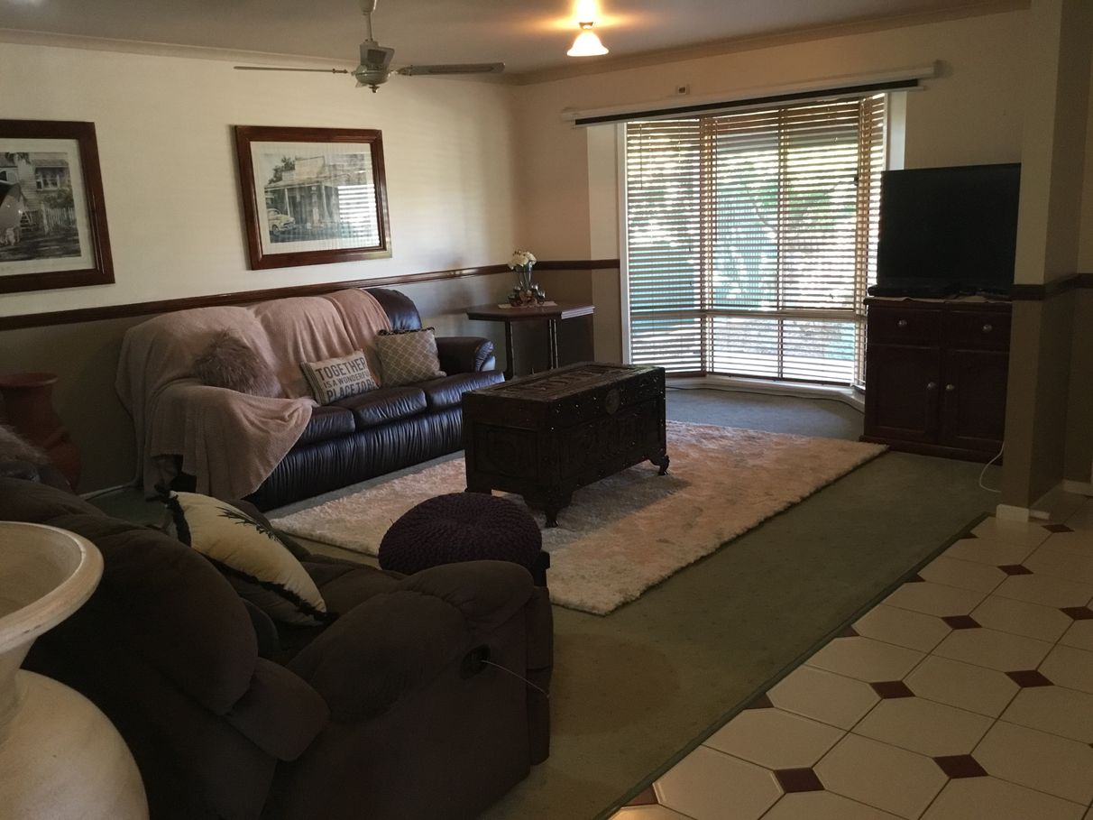 4 bedroom brick house, 2 bathrooms (en-suite + large main bathroom with spa and separate toilet). Modern kitchen, large living/entertainment areas. Painted throughout. Solar power. Large shaded pool area surrounded by paving and garden. Large 8x12 metre powered shed. Yard established with paving, lawns and gardens. A double carport as well as secure space for at least 3 other vehicles, trailer and caravan. A pergola, courtyard and a tiki hut. Automatic watering system and triclon. 2x22,000 litre rain water tanks (one tank connected to the back end of the house, the other tanks’ overflow goes into the first tank) . Also has a licensed bore. Security cameras around the full perimeter of the house.