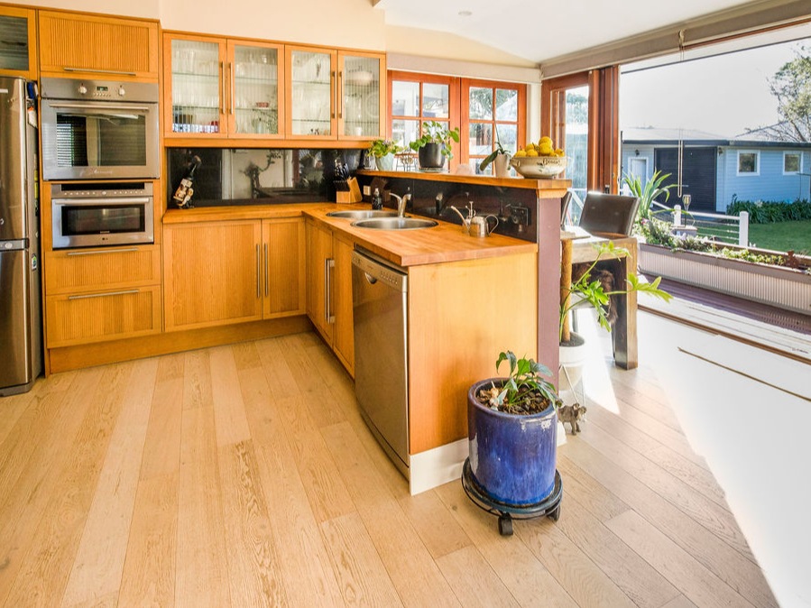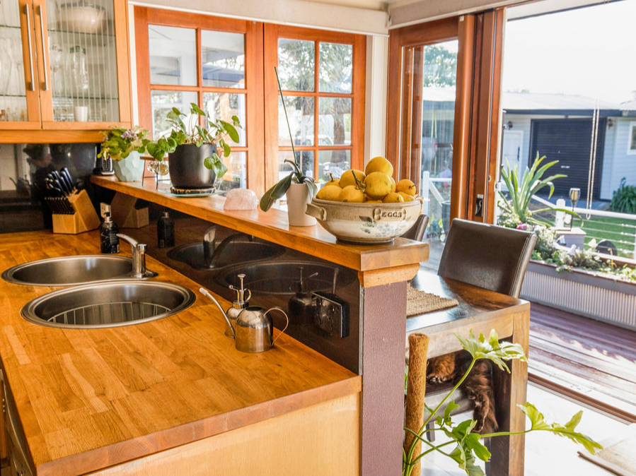 - Custom kitchen with walk-in pantry and Oak bench tops