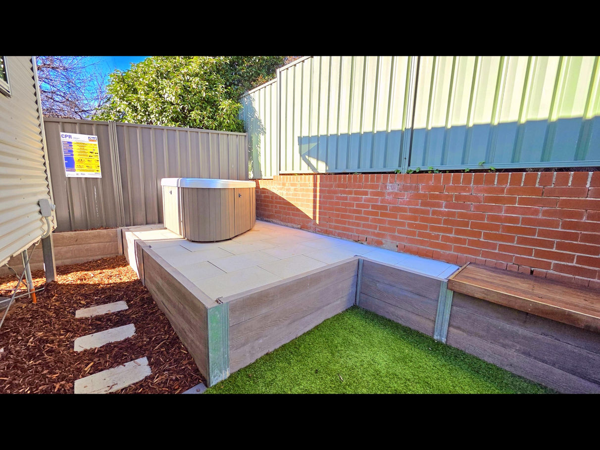 - Premium artificial lawn, luxury hot tub spa, garden shed, and underfloor storage