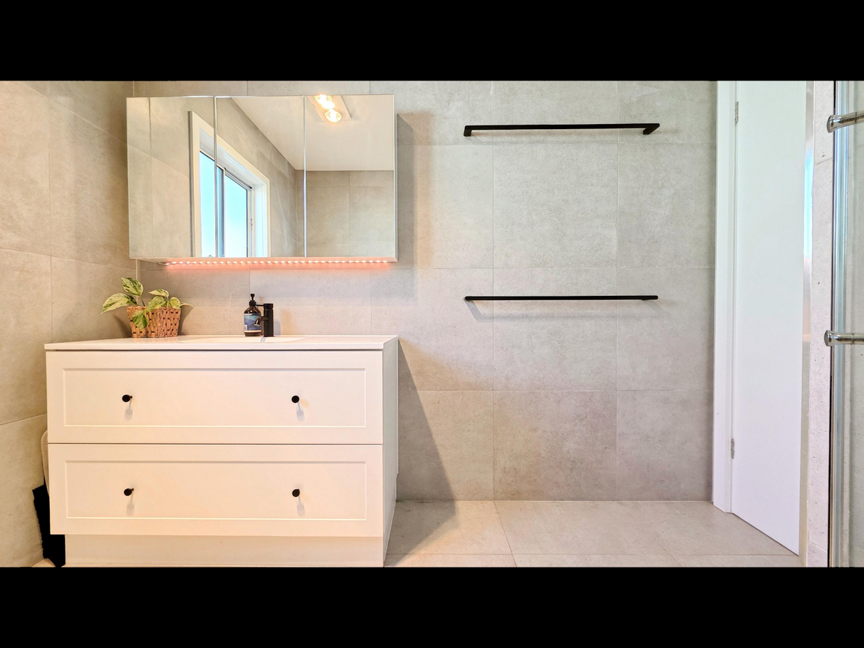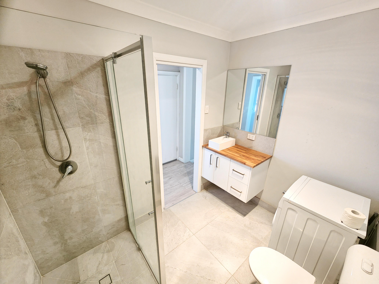 - Floor to ceiling tiled bathroom, separate toilet, and internal laundry