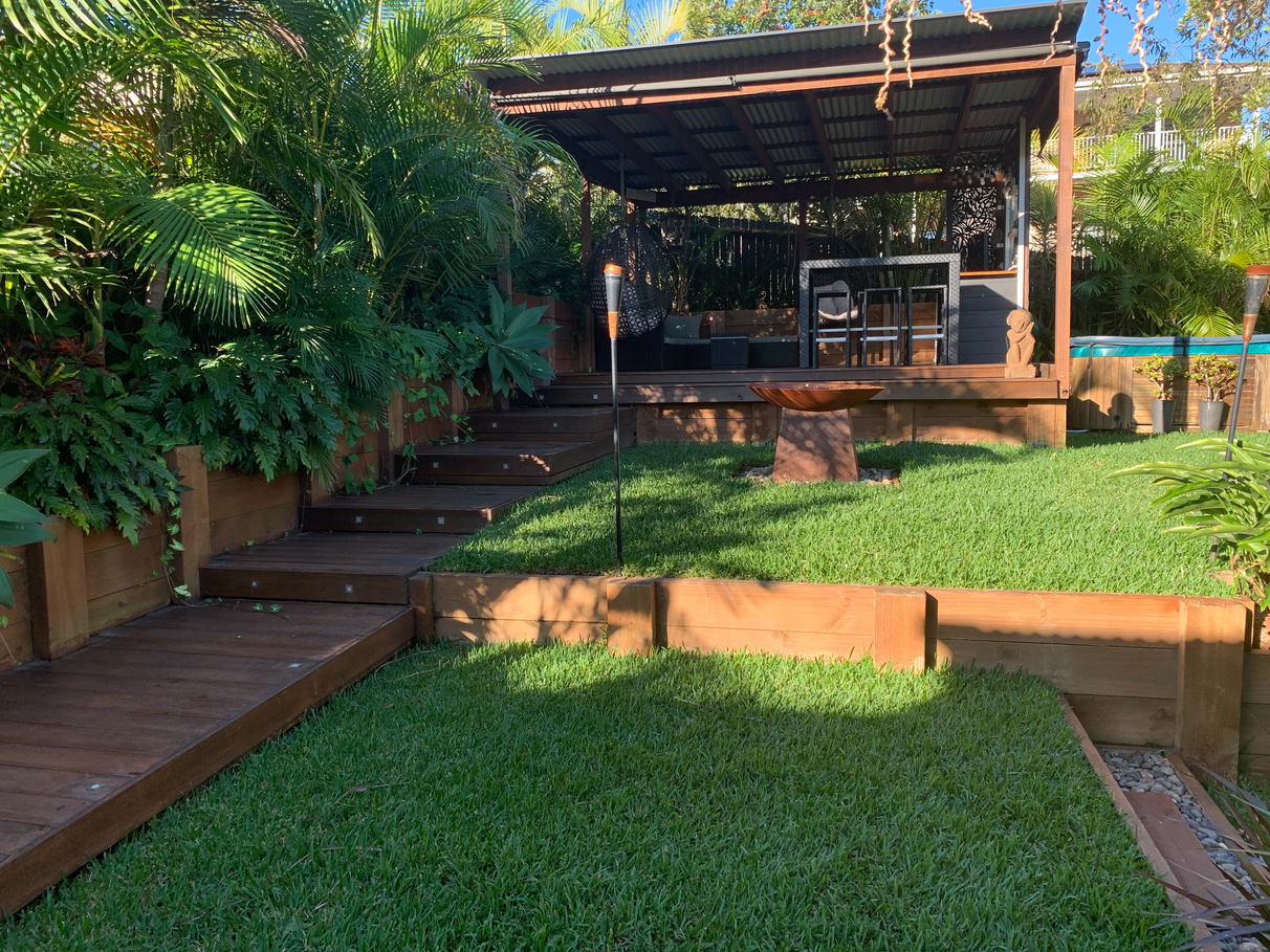 This tastefully renovated home features 3 bedrooms each with built in wardrobes and ceiling fans, modern bathroom and separate toilet. Open plan living and dining, adjoining a modern gallery style kitchen with quality appliances flowing to a covered rear deck overlooking a multi-level tropical landscaped yard with outdoor entertainment area and bar.