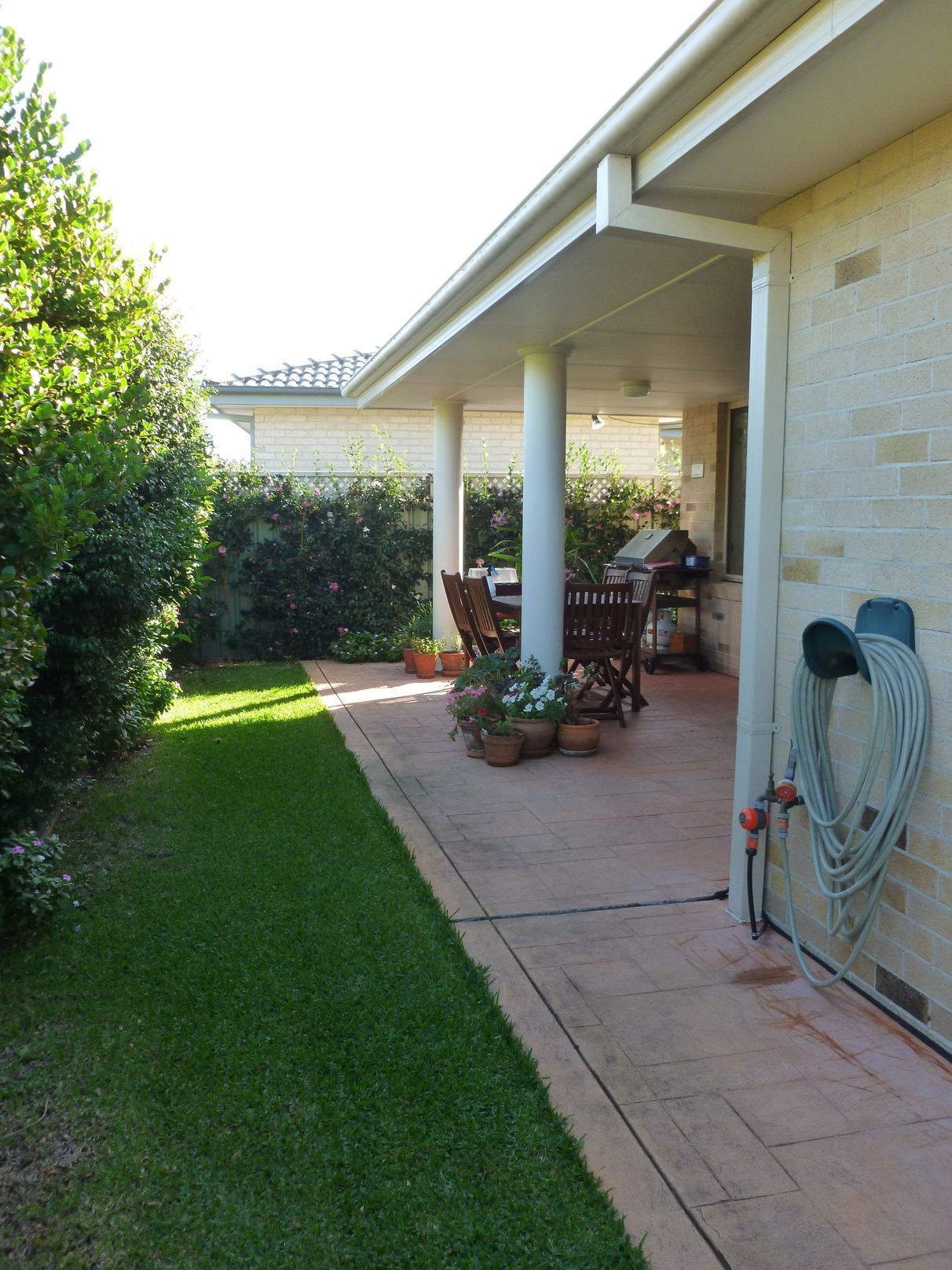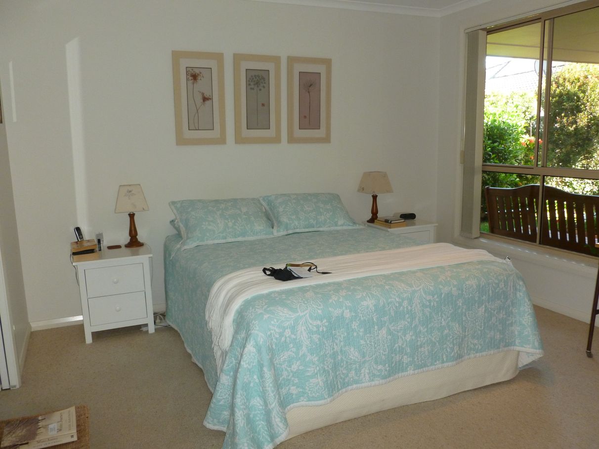 This Villa is very private, neat & tidy, quiet but convenient for shopping, bus services, beaches and more. It is the back of two with easy access to a two car garage with a roller door at the back for ease of use and storage of a boat or trailer. There is a discreet entry hall leading into a user friendly living area. A generous and well planned kitchen with wall oven, cook top, dishwasher and large pantry is a pleasure to work in especially because of the easterly aspect. The sun comes in all winter and is not too hot in the summer as it is higher in the sky. Air conditioning is strategically placed and very efficient. You look out from the living rooms onto a covered area ideal for a barbecue and surrounded by the immaculate garden. The garden is low maintenance with a fixed watering system and at one end is a suitable area for herbs, vegetables, etc. There are 3 bedrooms, the master has a dressing room and the others have built-ins. The master has an en-suite and there is a full bathroom with a separate toilet. The laundry is very practical with the back door leading straight out to the clothes line. The unit is tiled in all the high traffic areas but the living and bed rooms are carpeted. There are solar panels and TV aerials discreetly placed on the rear roof. Phone at any time to find out more or make a time to come and see us.