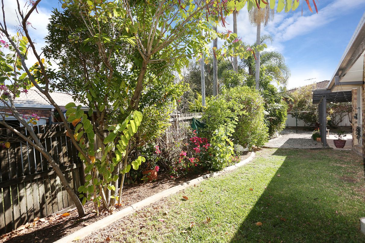 Perfectly positioned on a prime corner block, this low set 3-bedroom brick veneer home ticks all the boxes. Situated on an expansive block, the tropical trees and gardens invite you into the spacious interiors. Conveniently located close to public transport, schools and the motorway allowing easy access to everything you need. Showcasing a light colour palette and tiled floors complemented by large windows emphasising space and light throughout. The master suite includes a walk-in robe and major bathroom renovations have been recently undertaken with a new glass screen and tiled shower installed. Multiple living areas including a separate lounge and a second open plan living area which flows out to an undercover entertaining patio. Privacy is assured with high secure fencing and lovely tropical screening against the fence line.