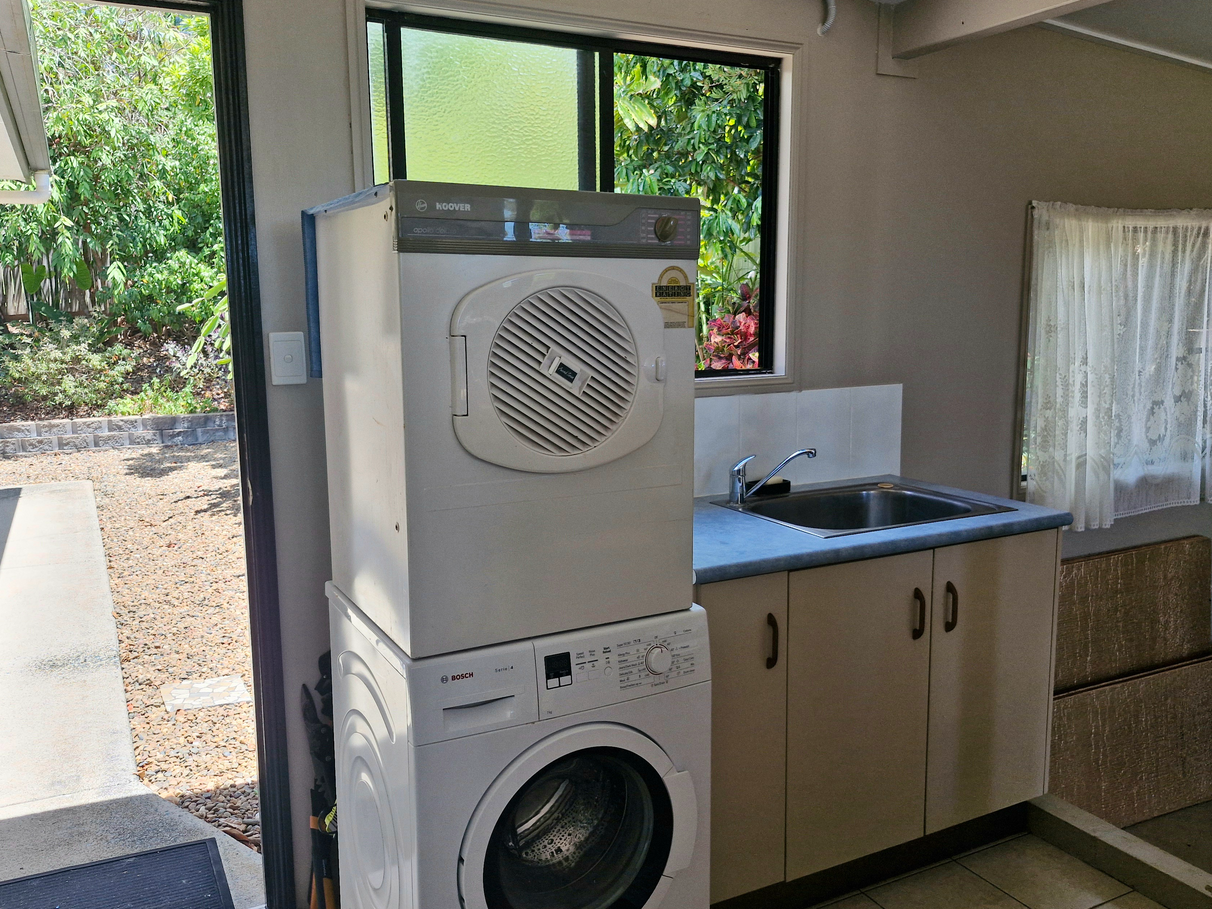 *3 bedroom, 2 bathrooms – main bedroom easily accommodates a king bed, with walk-through robe to ensuite. Other 2 bedrooms have built in wardrobes and double windows. Bedrooms and living area have luxury wool berber carpet. Main bathroom has access to outside laundry, and outdoor shower.