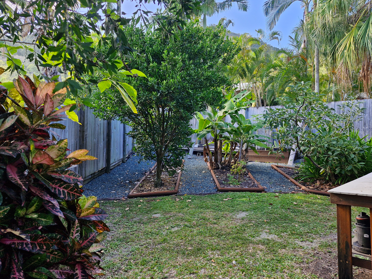 *Automatic irrigation throughout tropical gardens with many rare plants, established herb/vegetable garden and small orchard with established and fruiting trees