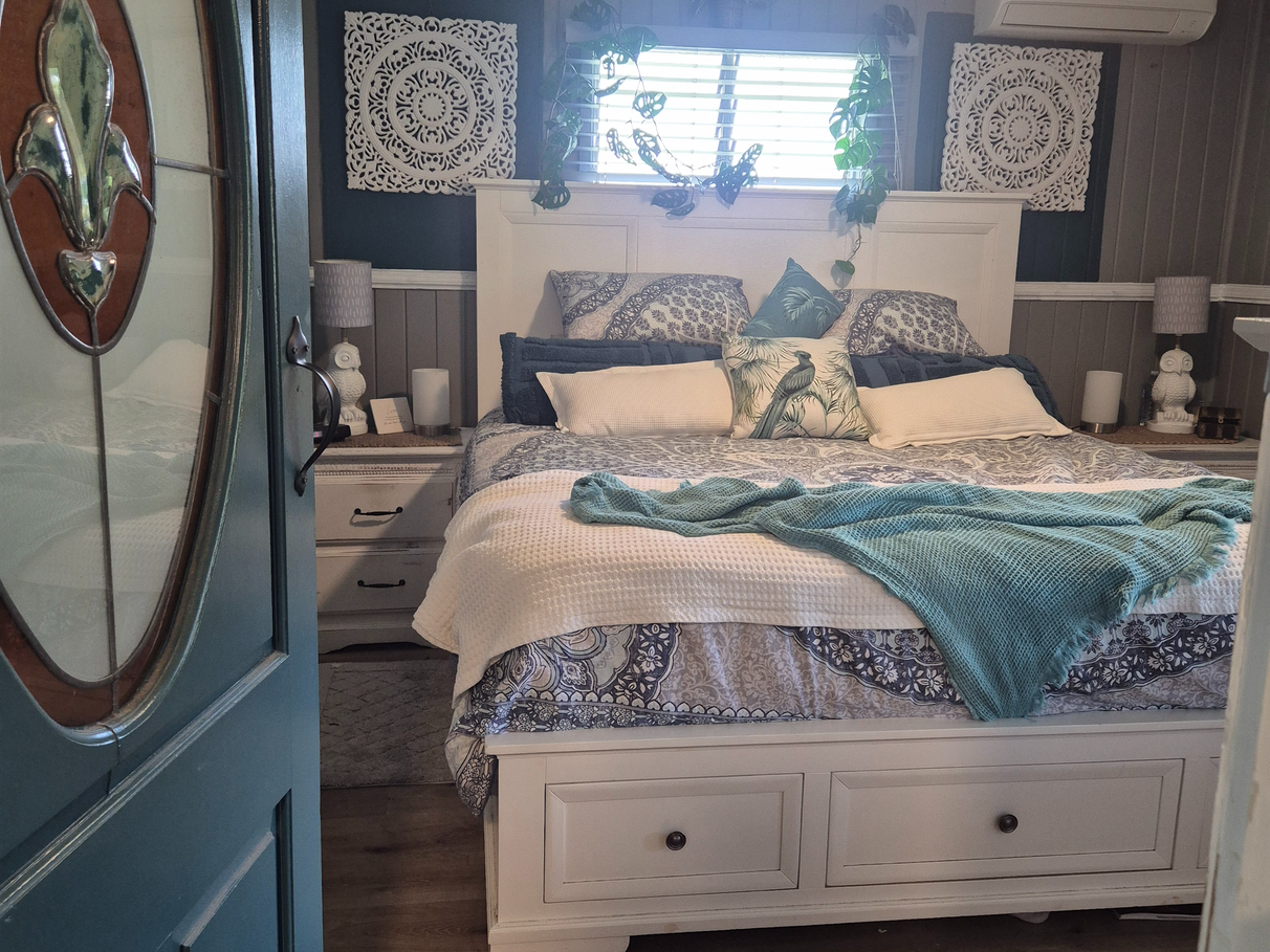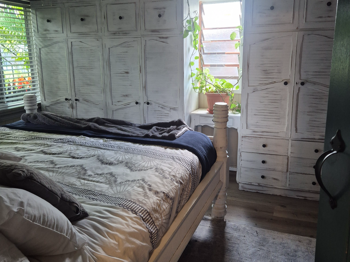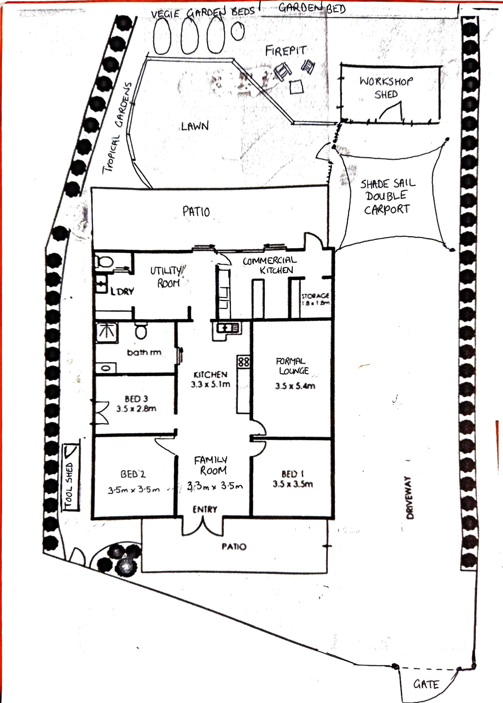 The third bedroom is currently being used as a shop to sell goodies which are made onsite in the fully Council approved commercial kitchen out back. Depending on your preference it can remain as a shop or can be another bedroom.