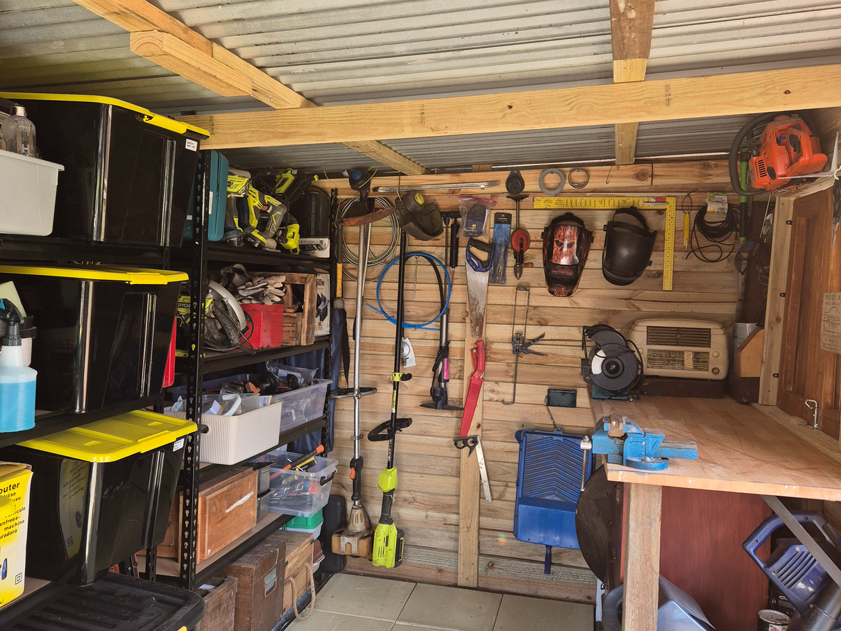 If you like to tinker in the rustic little workshop, there is shelving and a workbench all included.