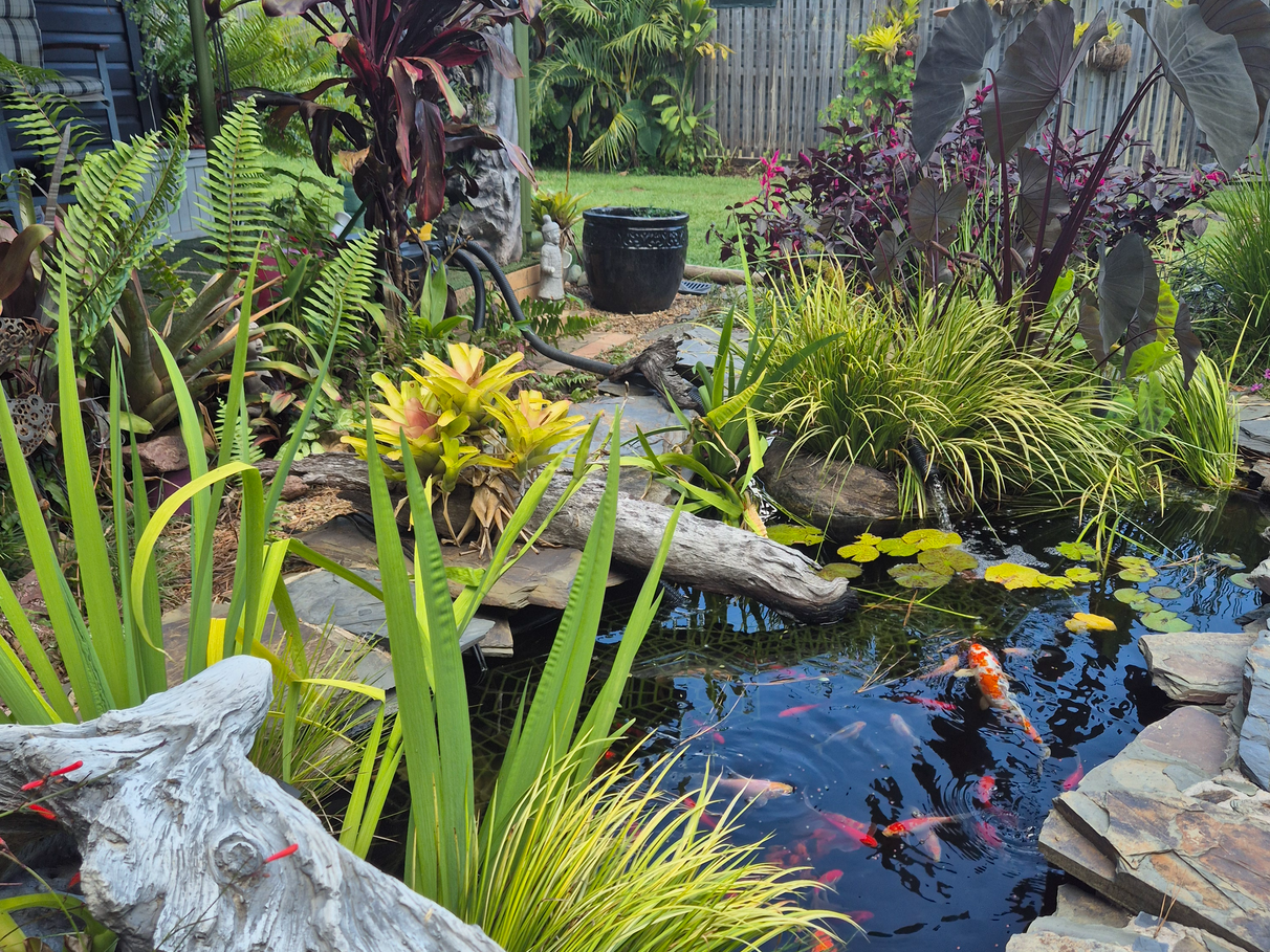 With low maintenance tropical gardens and a large pond water feature which includes many varieties of fish. Enjoy your morning coffee listening to the sound of the waterfall and admiring the stunning scenery within your very private fully fenced yard.