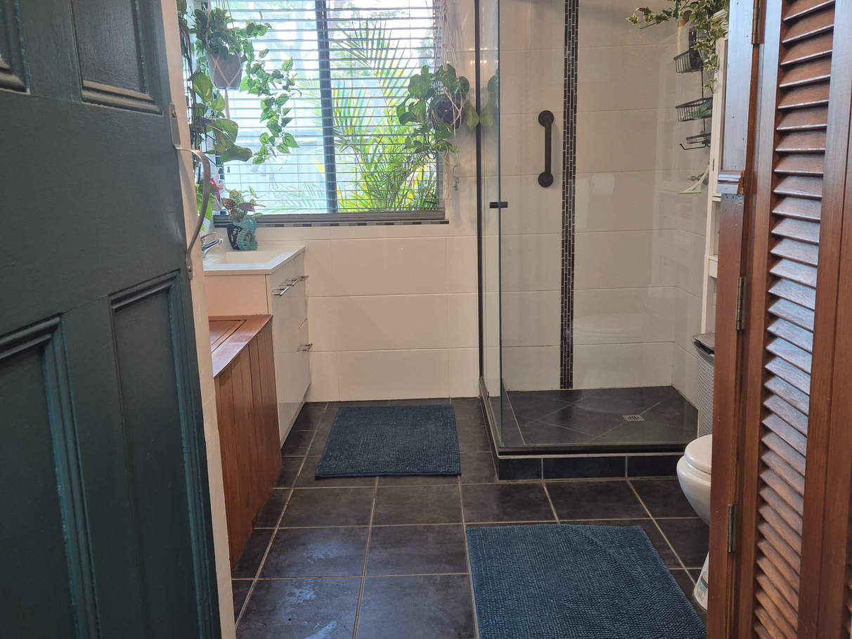 There is a lovely bright bathroom with new shower screen, and two large linen and storage cupboards with a blanket box for extra storage as well. New 240 litre stainless steel electric hot water system also recently installed. There is also a second toilet in the laundry area.
