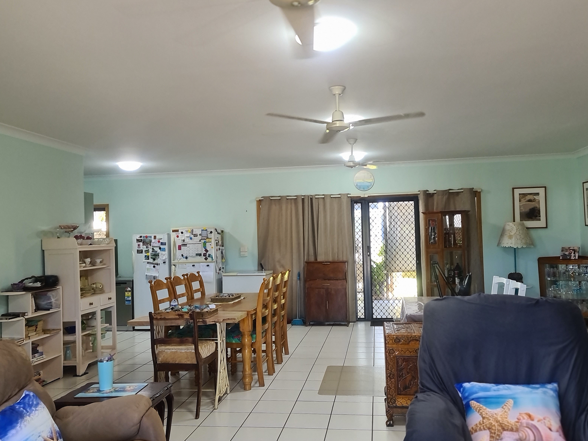 Lounge/dinning, 7 x 10mts. Air-conditioned, 3 ceiling fans. Lounge double slinding doors opening up onto front deck. Dinning room double sliding glass doors opening onto back patio.