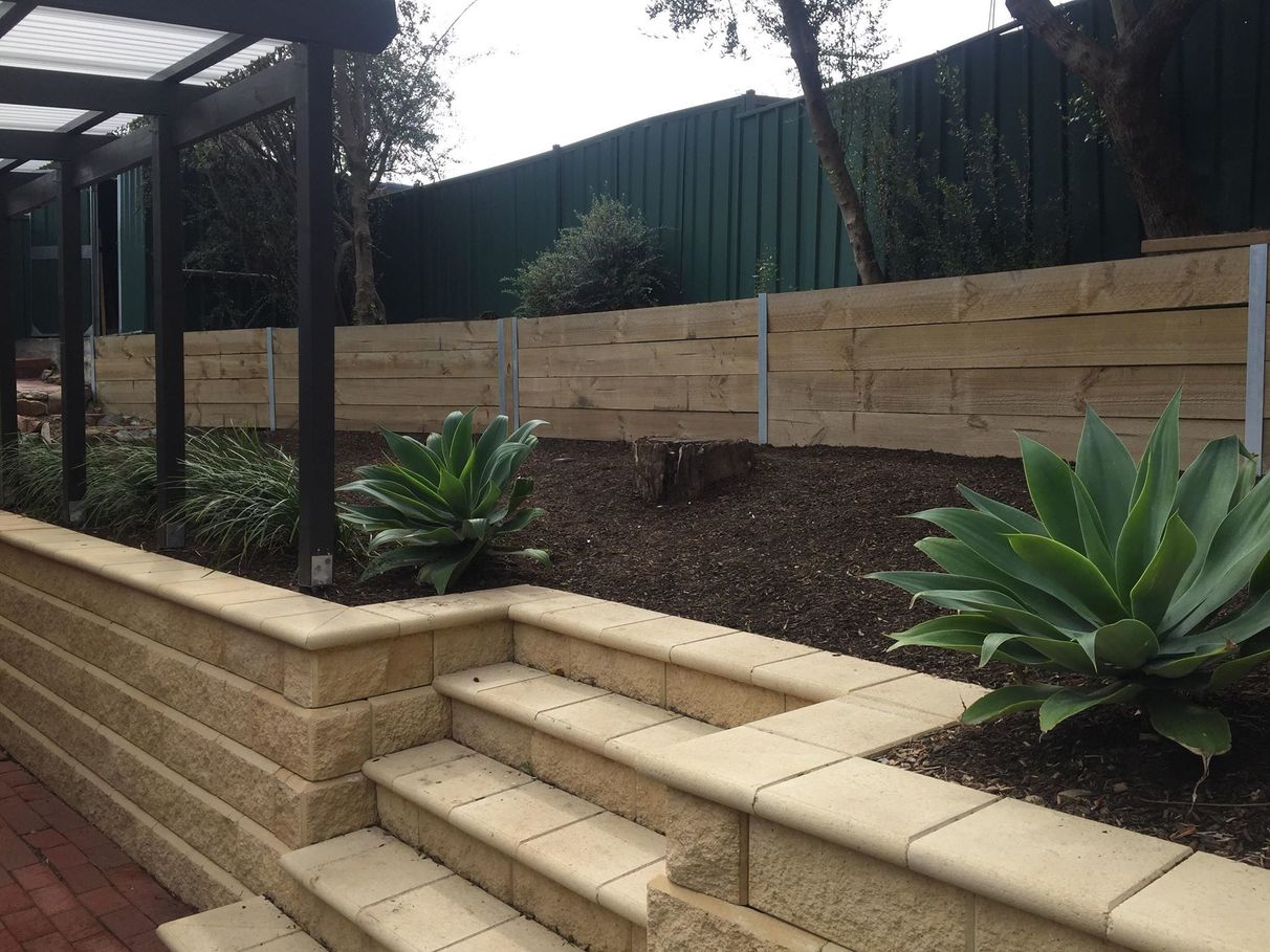 • New retaining walls throughout back yard