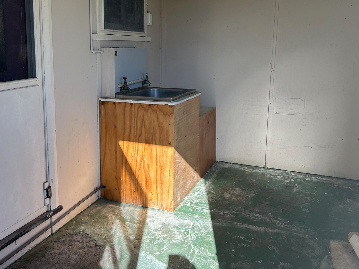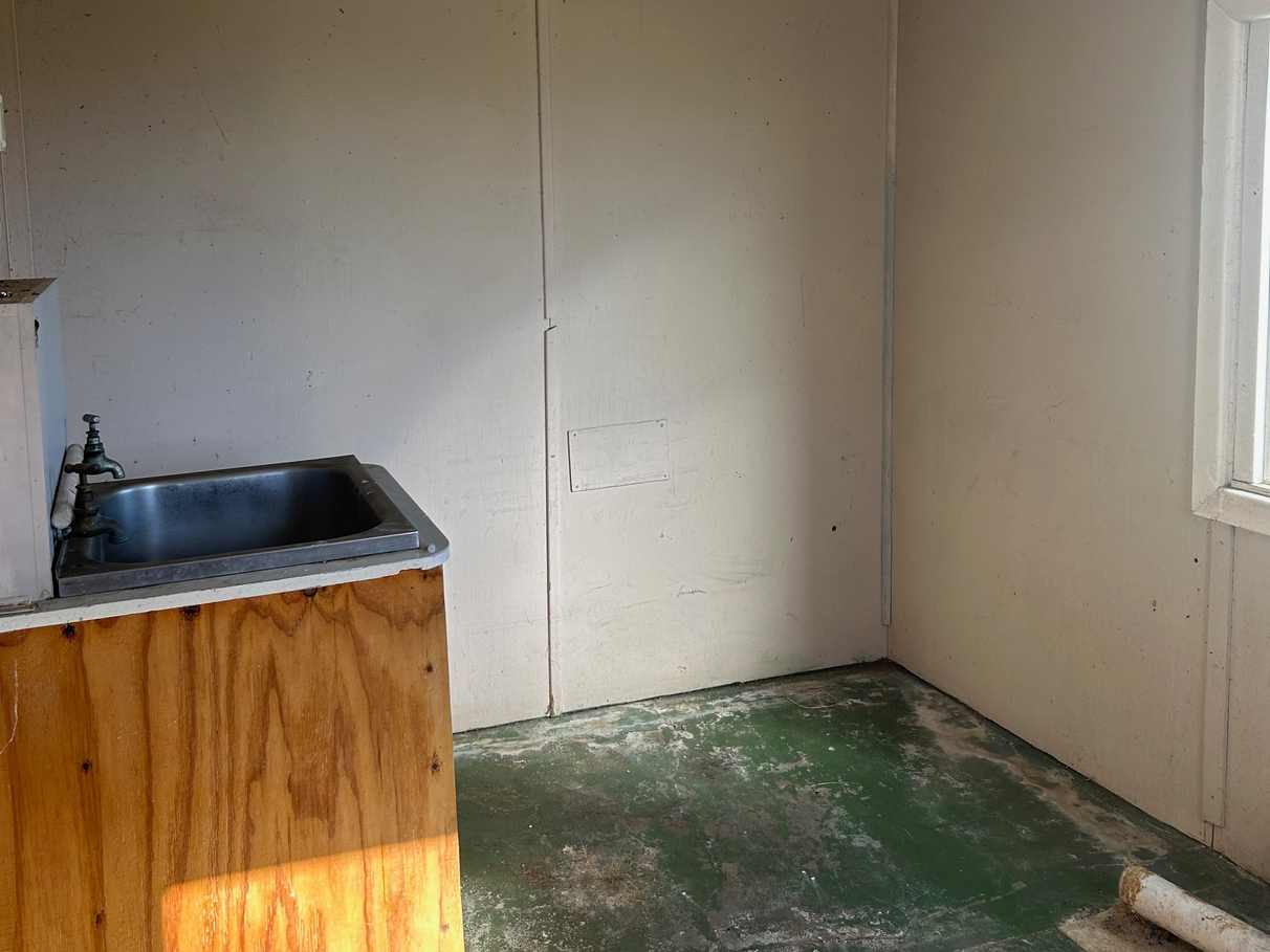 The very large 96 m2 shedding at the back has a concrete floor. Great for storing materials for the renovation period.