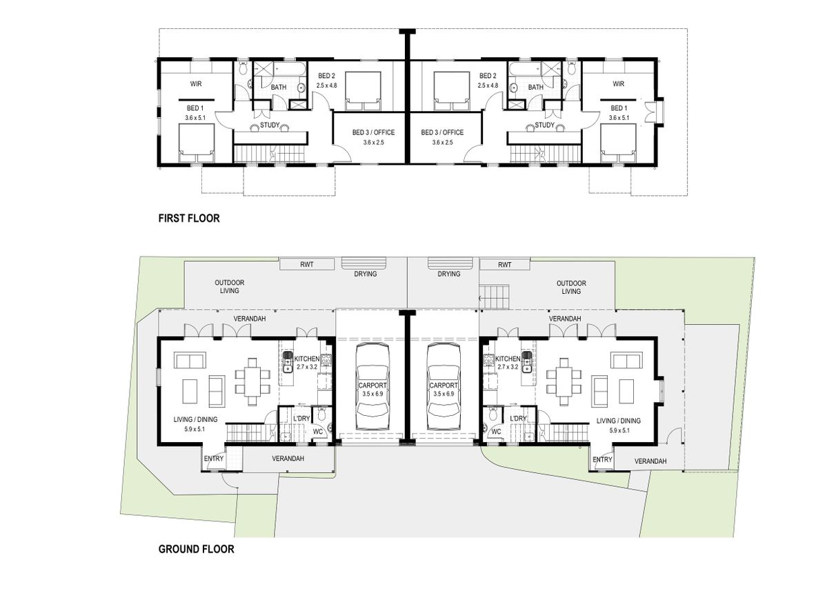 Two brand new 2 storey, 3 bedroom homes in a small community group and excellent location, within easy walking distance to shopping, medical services, public transport and much more. These beautiful modern homes feature: quality fittings & fixtures; sparkling bathroom; 2 WCs; 2.7m high ceiling in spacious open planned living/ dining room that opens onto a north facing outdoor entertainment area; central kitchen with dishwasher; study nook; carpet and oak timber flooring; light fittings; built-in robes; ample storage; ducted air conditioning; large garage UMR; and low maintenance landscaped gardens in a beautiful park like setting. $15,000 Government grant available to 1st home buyers.