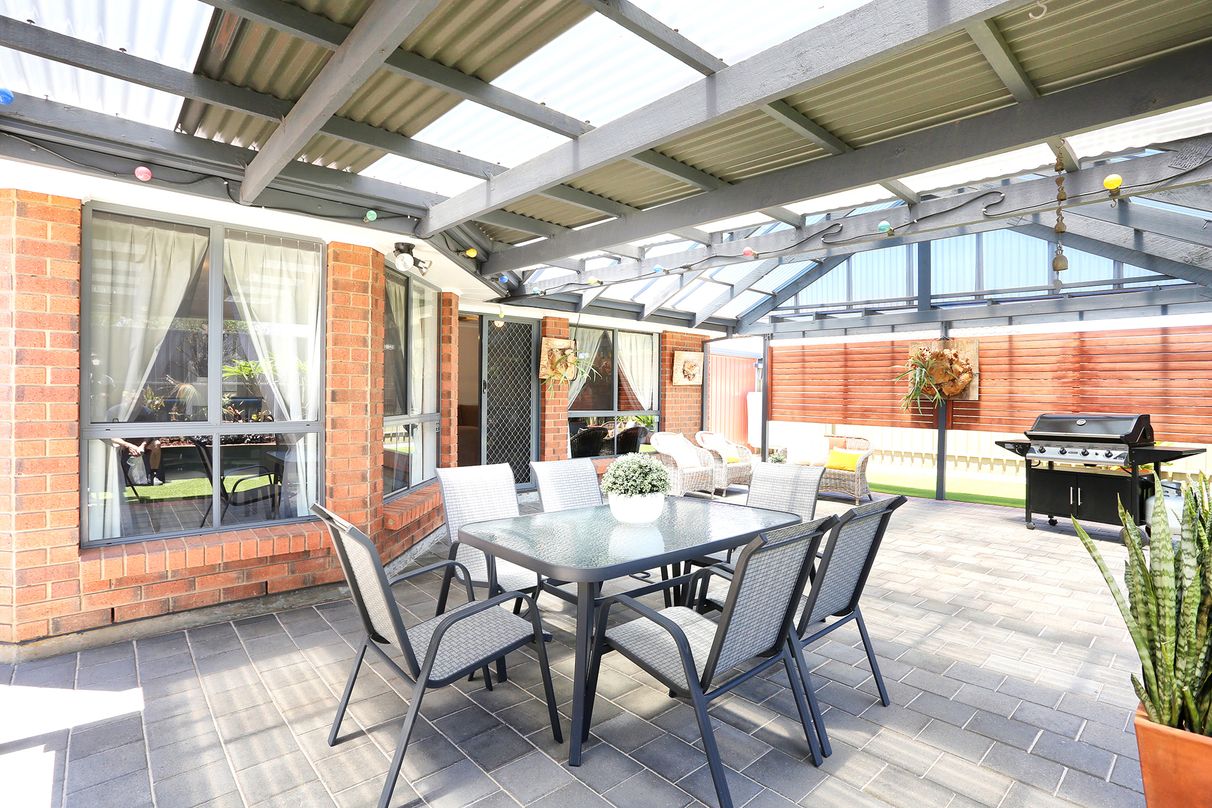 Sporting a pitched pergola allowing you to entertain in rain, hail or shine, the area is paved to ensure maximum enjoyment without the upkeep. With beautifully landscaped, low maintenance gardens and a high fence for absolute privacy - it is the perfect spot to enjoy afternoon drinks with loved ones or a quiet family bbq in the cool summer breeze.