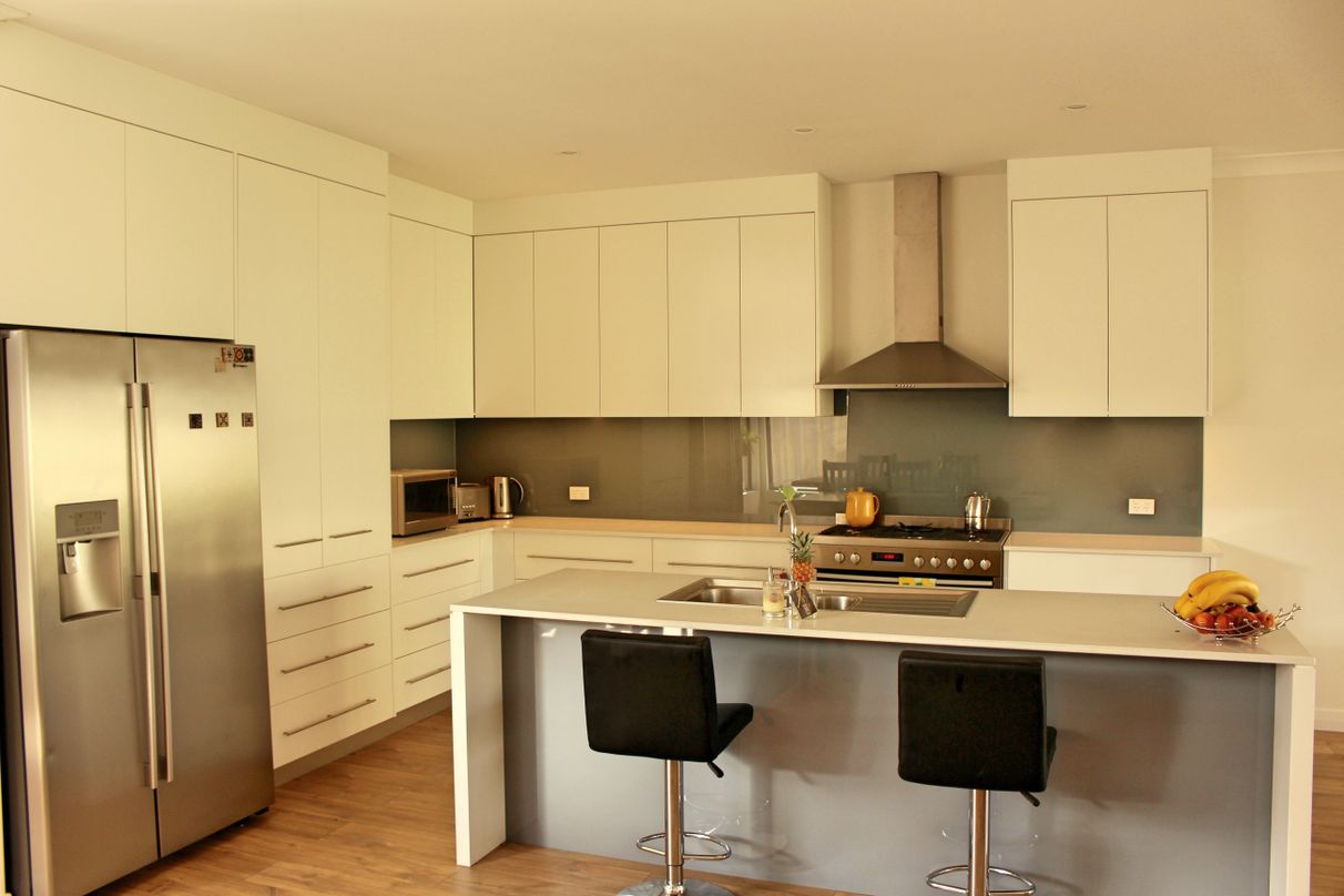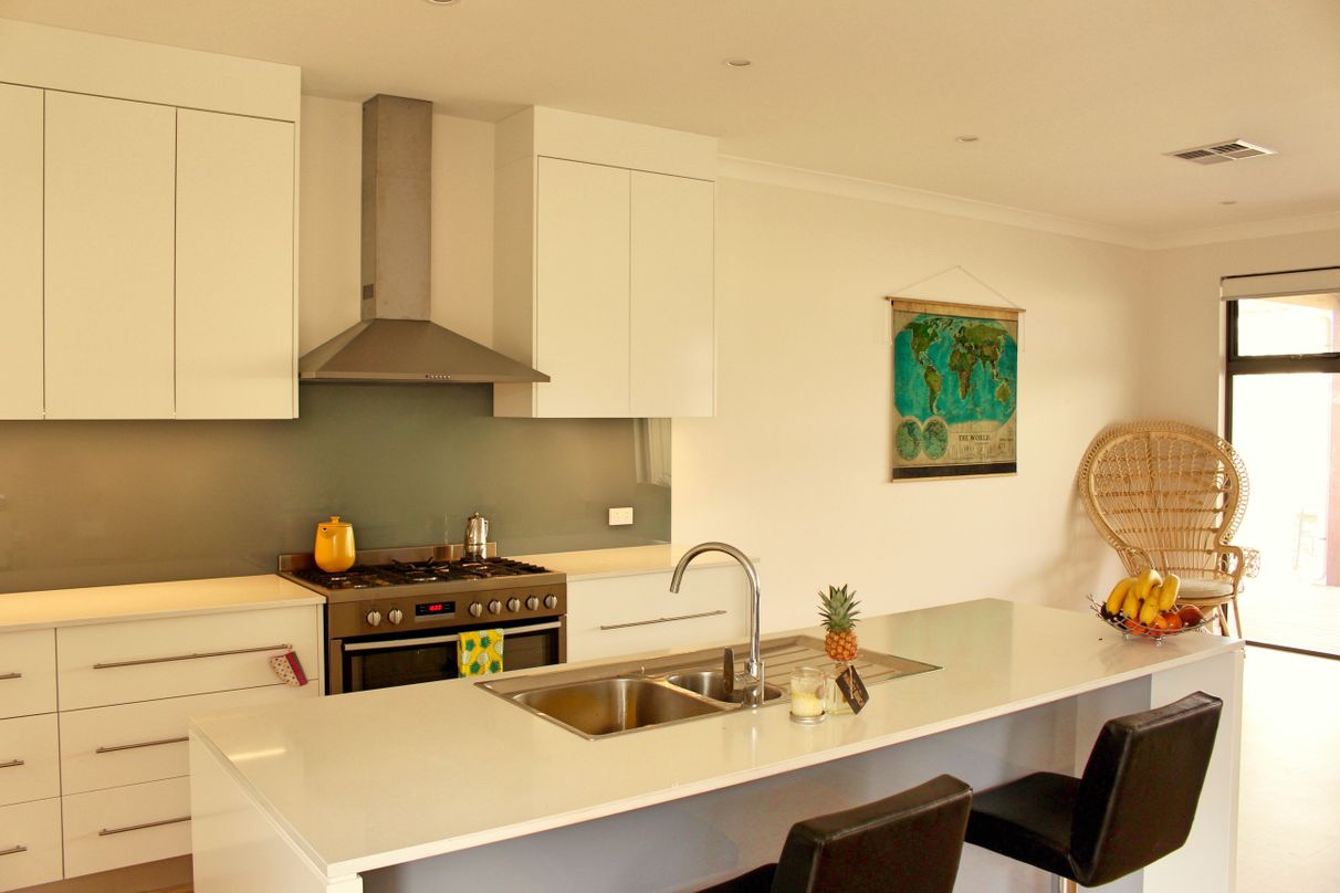 Whether cooking for two or catering to a crowd this kitchen has quality stainless steel Westinghouse appliances including 900mm free standing oven/cooktop and dishwasher, ample cupboard and bench space. Also features stone bench tops and glass splash backs.