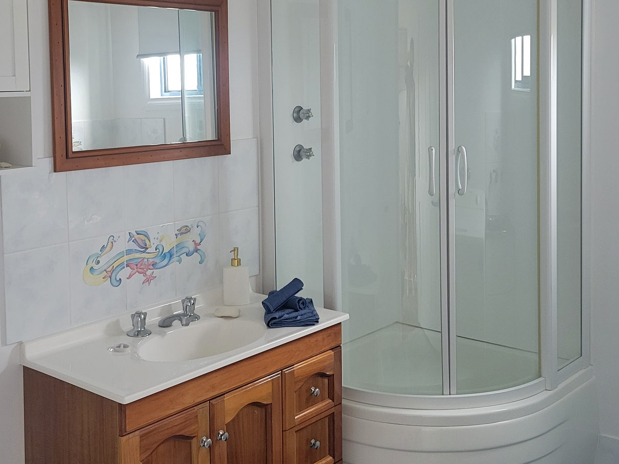 Recently refreshed inside and out, the cottage is fully off-grid, powered by a modest solar system with gas cooking and hot water. Water is supplied via a pressure pump from two 22,500L rainwater tanks, and a septic system is in place—making sustainable coastal living effortless.