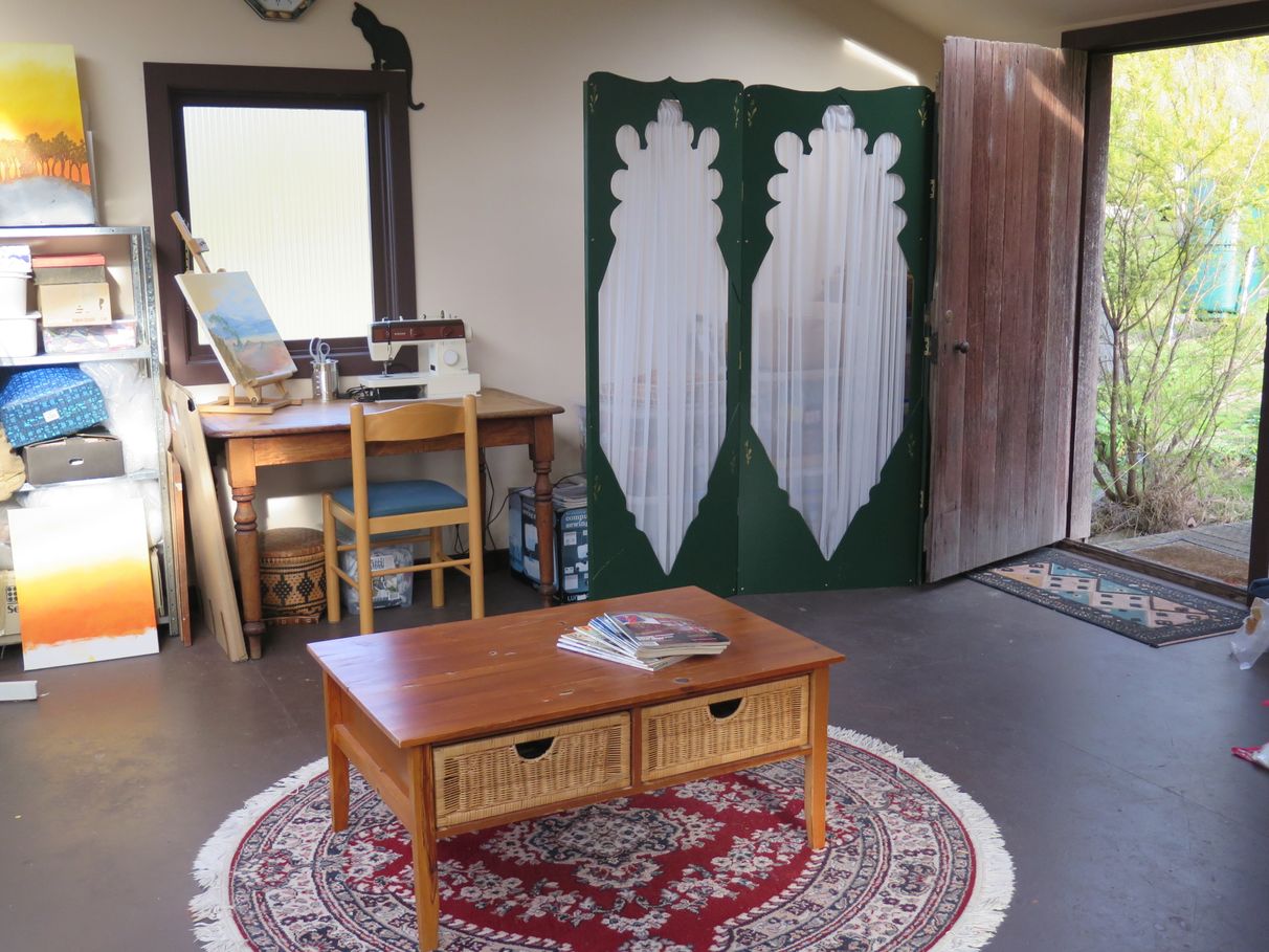 Halfway down the garden path is the Artist Studio, size: 6m x 7.2m, with a bathroom and toilet and lots of natural light.