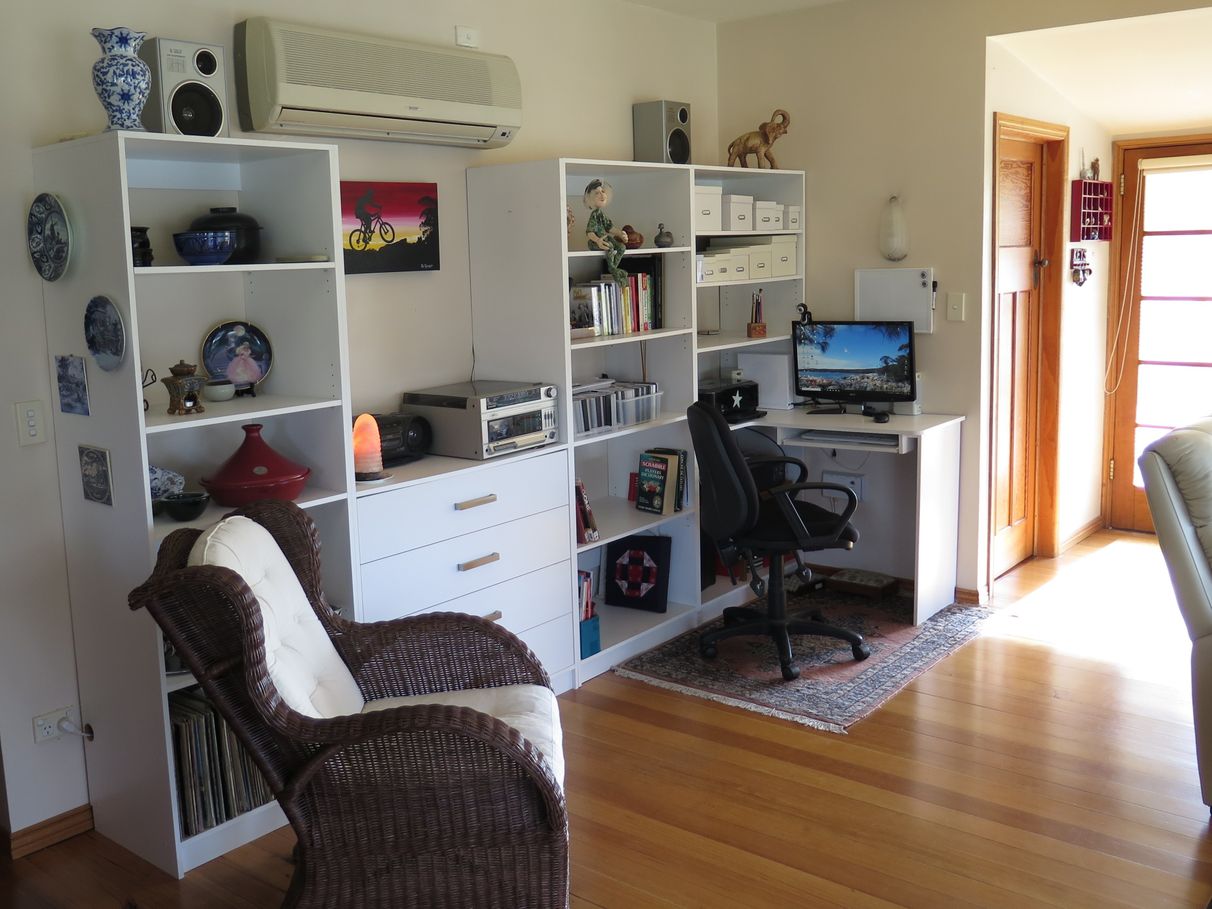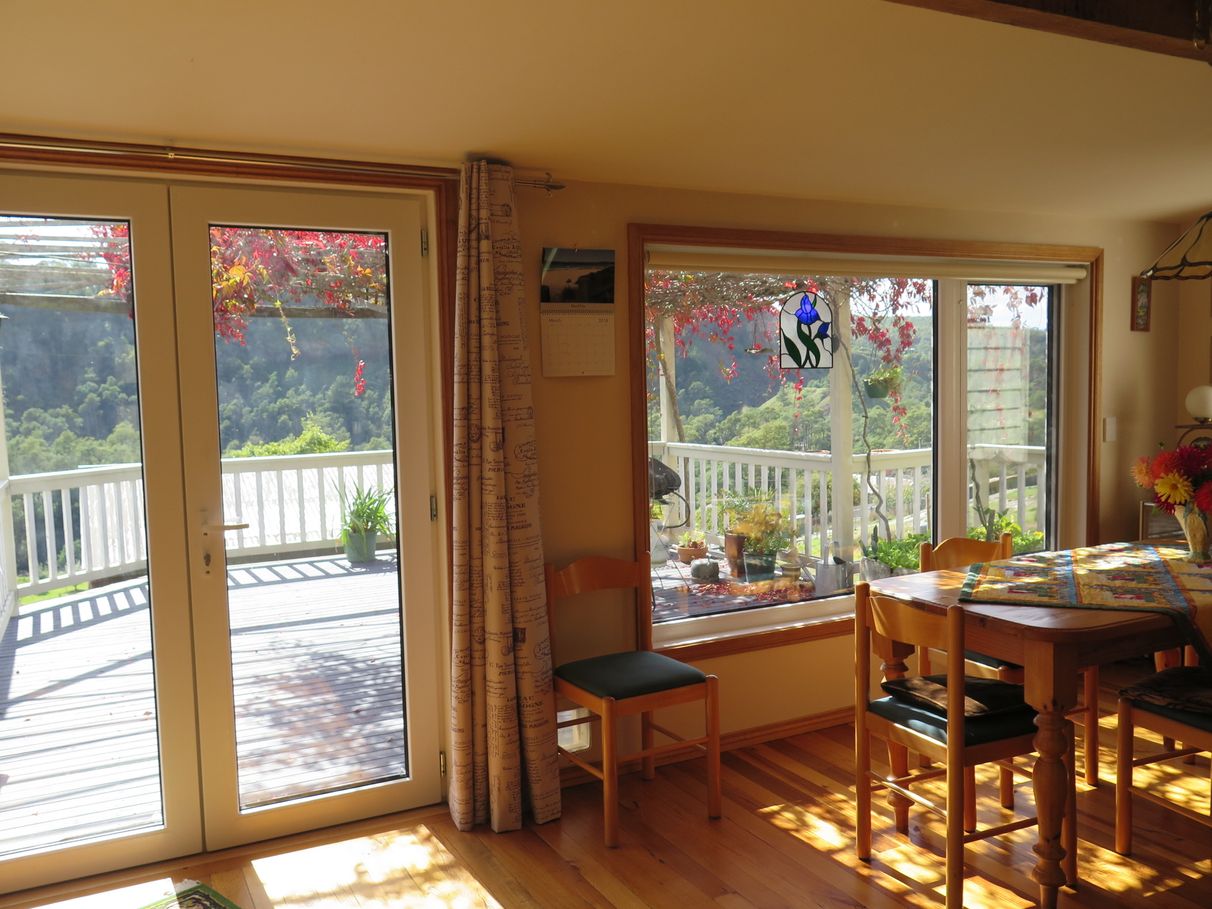 The3 bedroom timber house with artists studio and two car garage sits on an easy-care 1/4 acre block, located on a quiet back street, just two minutes from the mountain bike trail head. It is set on the hillside facing to the north-east, looking down on the Ringarooma River and the waters of Briseis-Lake, shimmering through the tree-line.