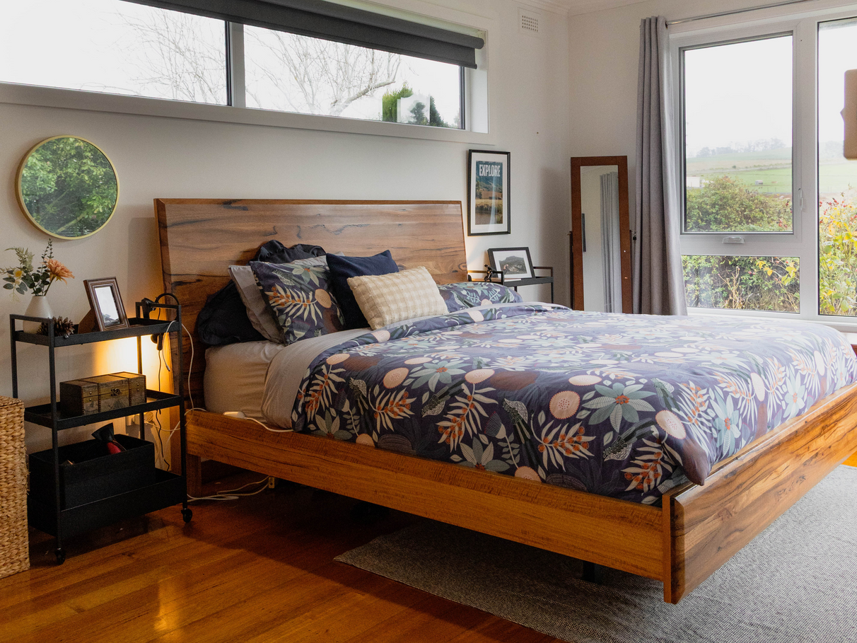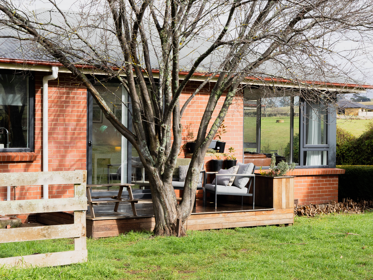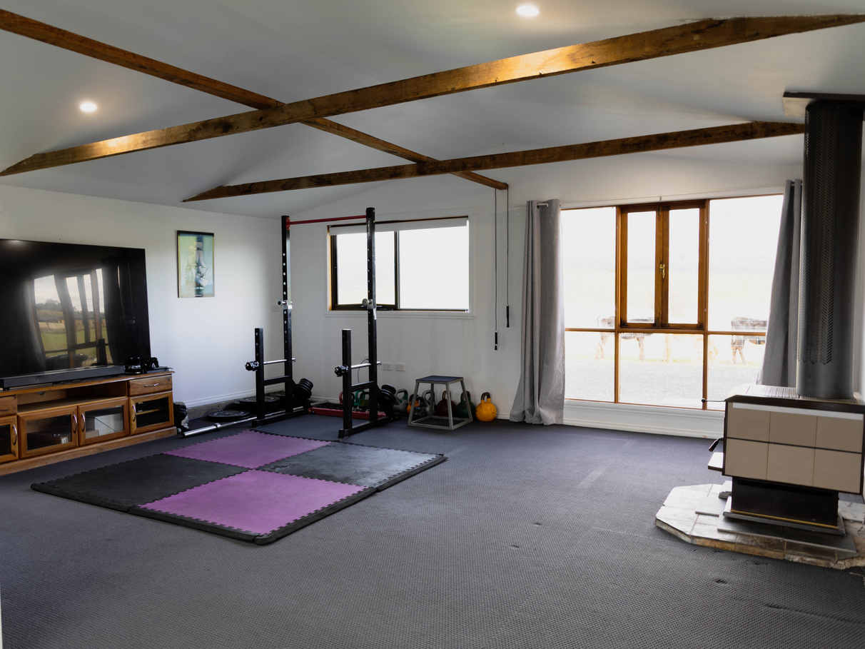 The approx. 7 acres outside features a family friendly fully fenced yard with two fully fenced paddocks. Bring your animals! There is so much water on the property you will never have to worry, with a year-round running creek at the front and a massive dam in the back paddock with all kinds of living things to explore including Patty, our resident platypus. Don’t worry he isn’t shy and will pop his head out to say hi.