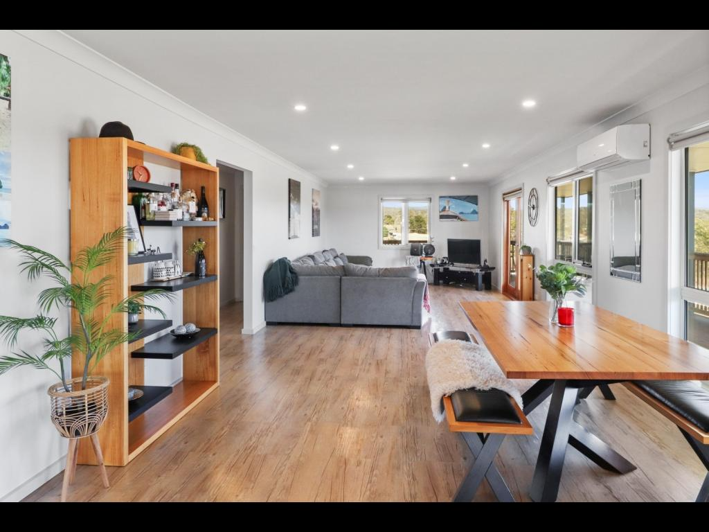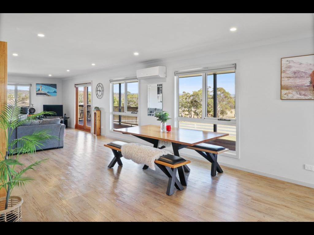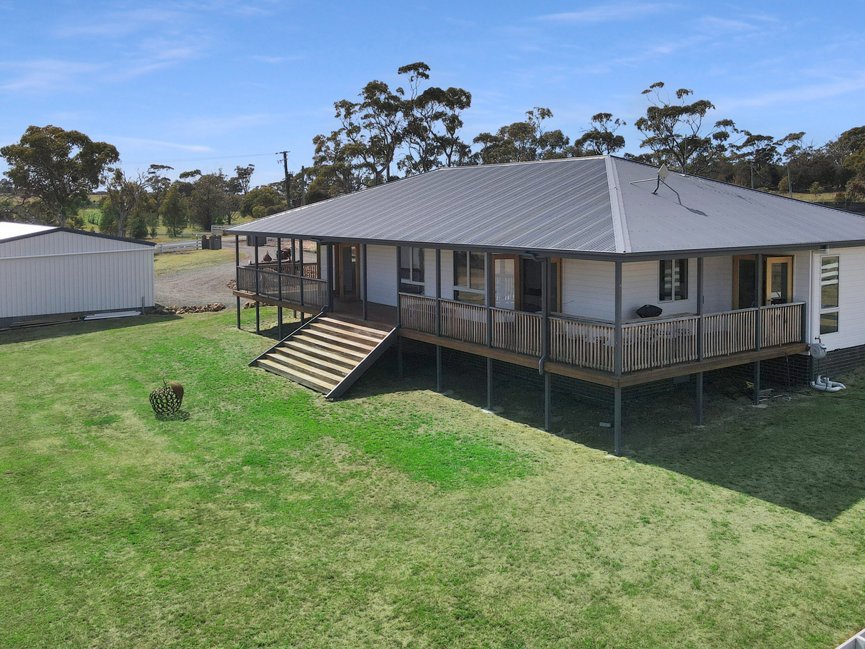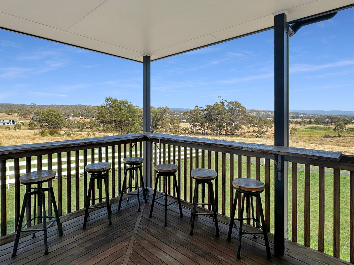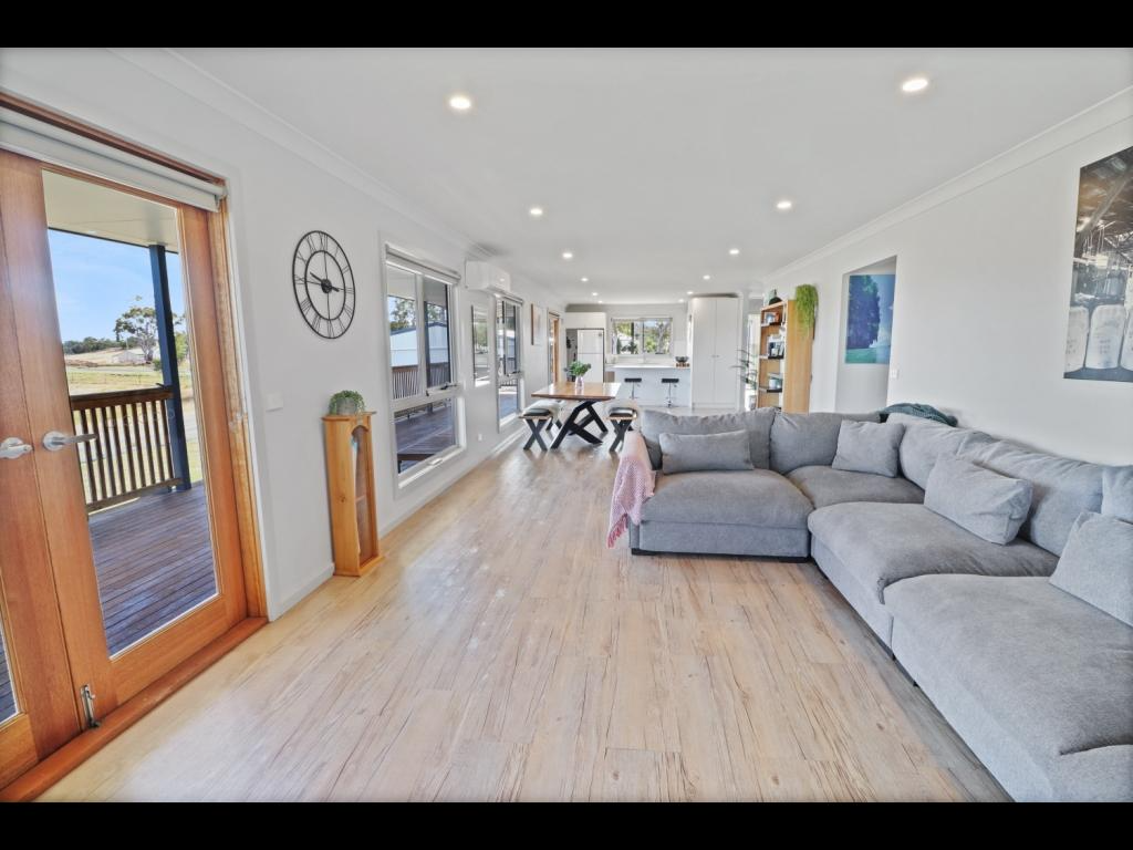 The front of the home has 4 access points to the wrap around deck/undercover verandah for ease of access and additional light. The house is north facing, with views over the lovely countryside and the Eastern Tiers. The modern house is less than 8 years old, being built in 2016.