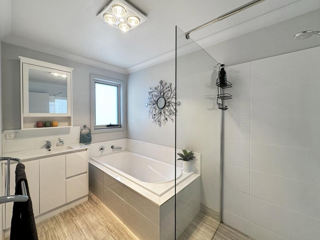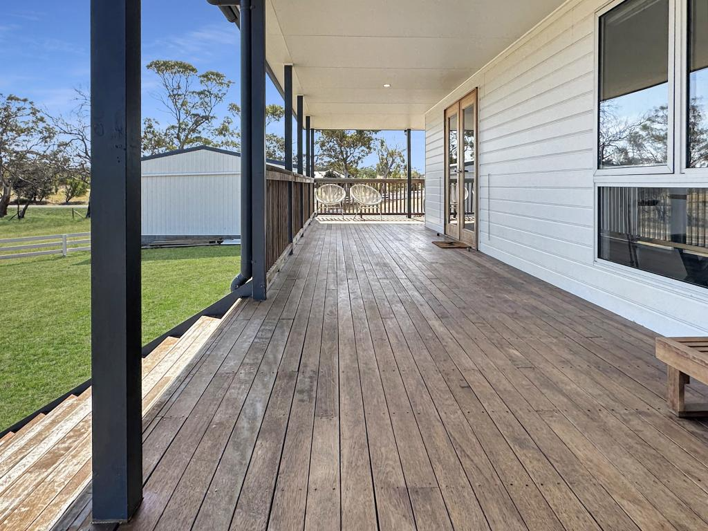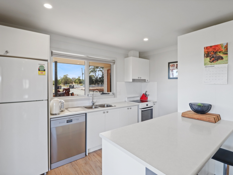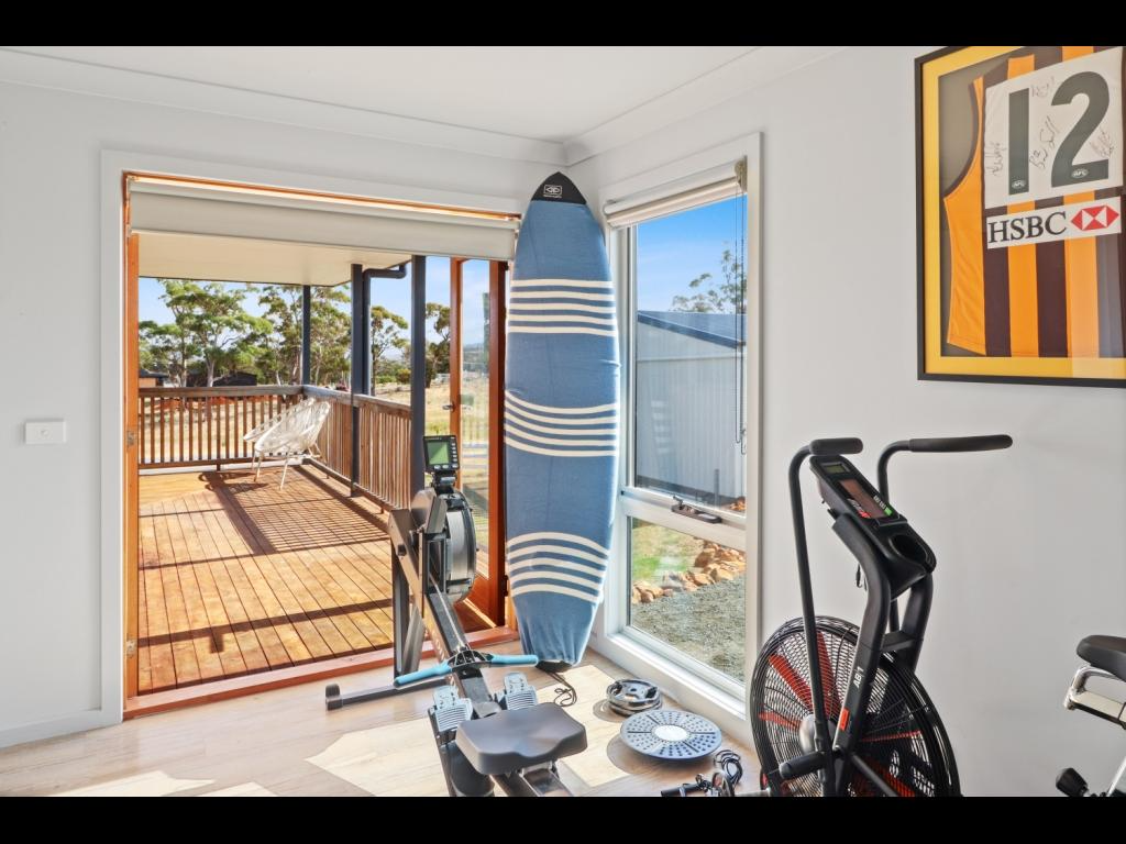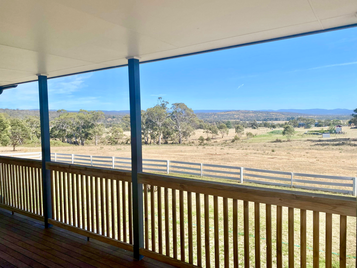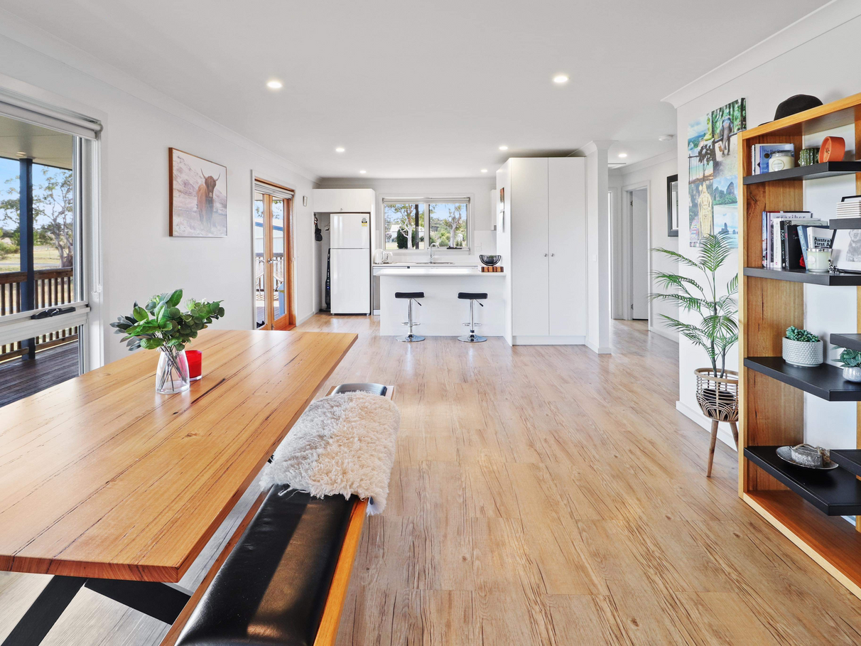 The front of the home has 4 access points to the wrap around deck/undercover verandah for ease of access and additional light. The house is north facing, with views over the lovely countryside and the Eastern Tiers. The modern house is less than 8 years old, being built in 2016.