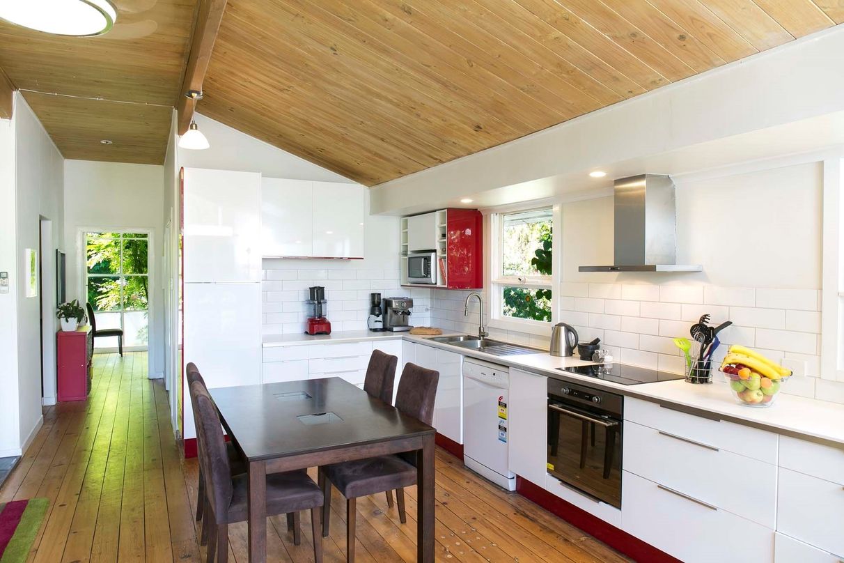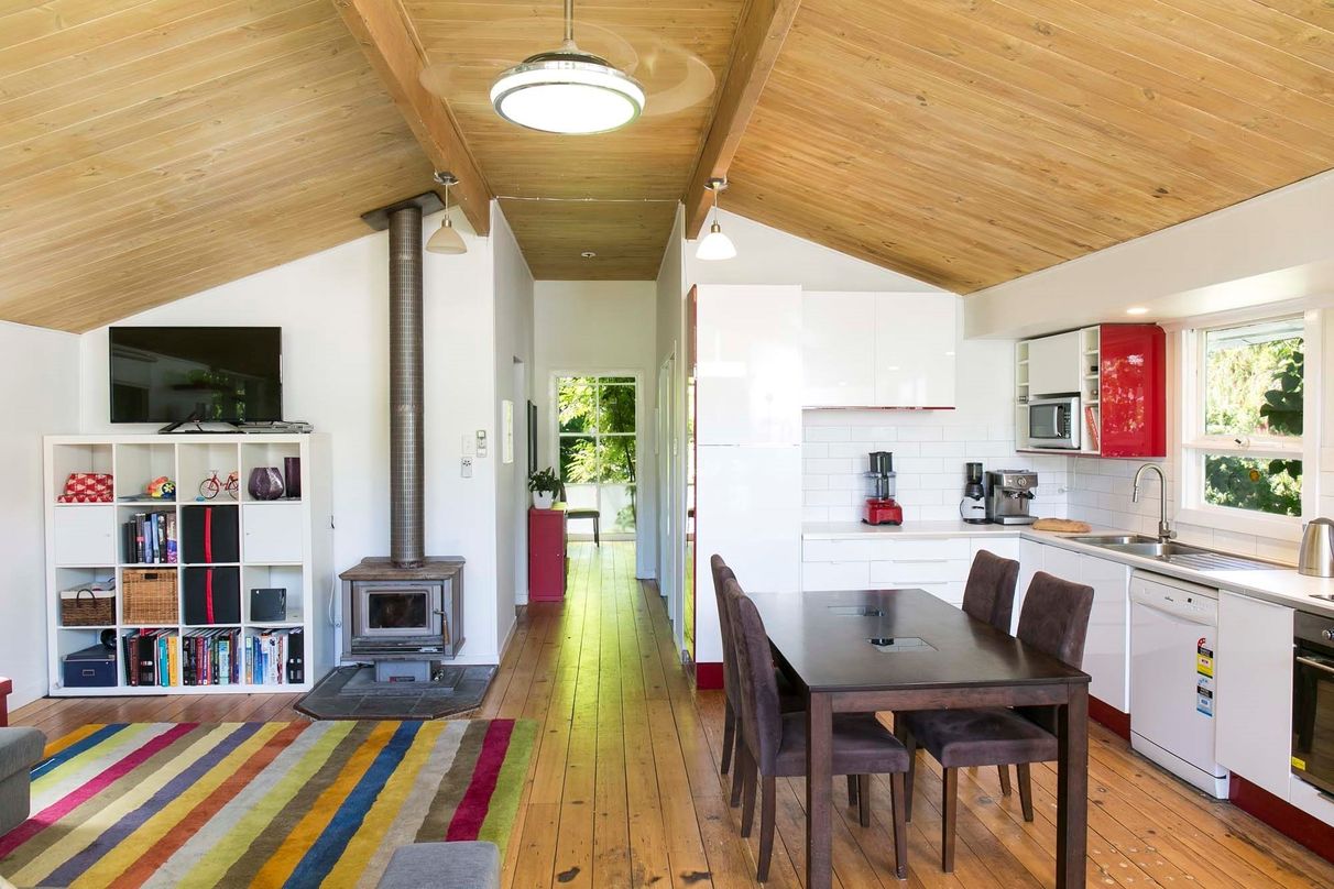 Upon entering the weatherboard home you will encounter a large, freshly painted open plan living and dining area with cathedral ceilings and polished timber floorboards. The brand new, fresh and modern kitchen has plenty of bench space and storage, and is great for entertaining. The kitchen also features an induction cooktop, pyrolytic oven, dishwasher and soft close draws. The combined living and dining area is kept cool in summer with a large Fujitsu spilt system air conditioner and in winter the house can be kept warm with the Arrow slow combustion wood heater or simply by turning on the split system. There is also a ceiling fan to keep you comfortable.