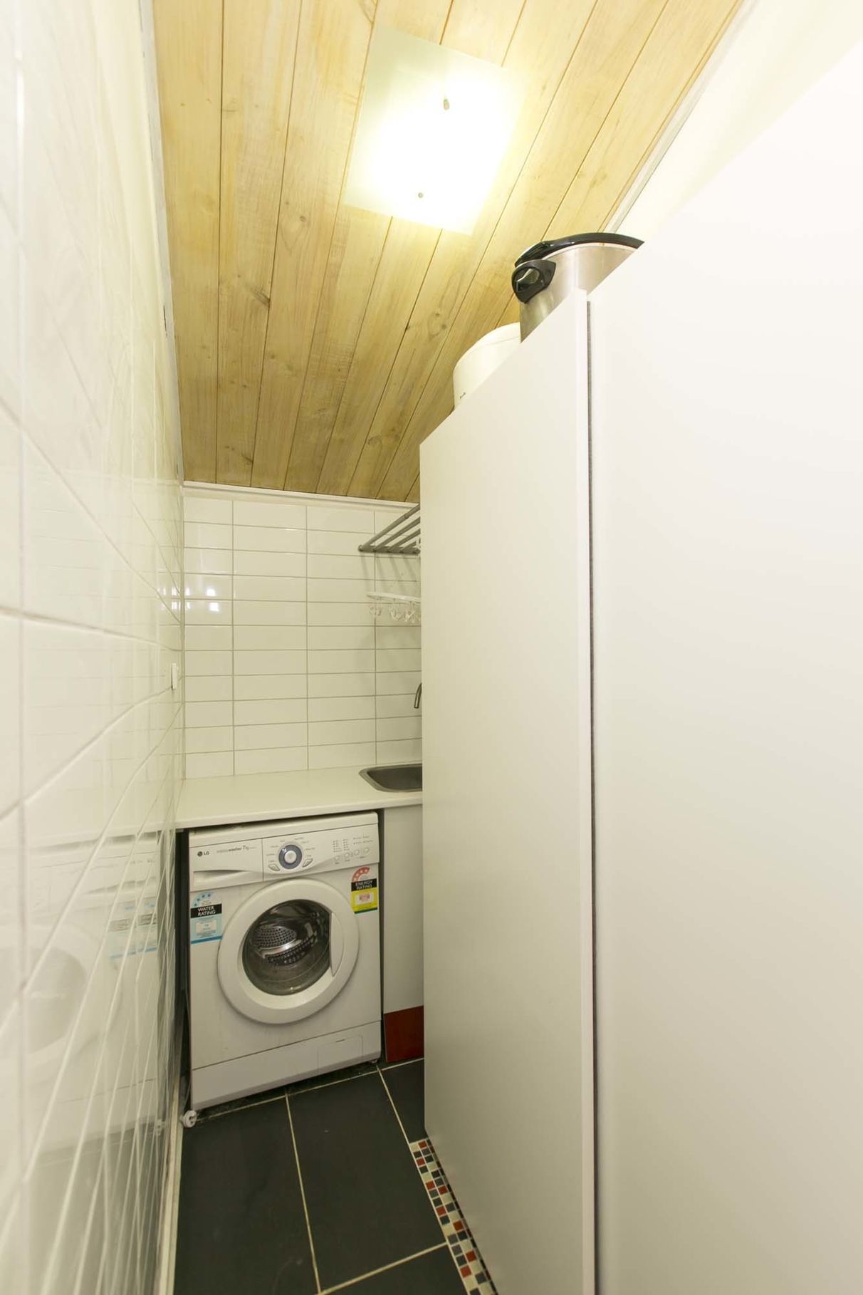 The new internal laundry is a great use of a small space and has plenty of storage. Along with the toilet, it is connected to the two rainwater tanks (total of 4,200L) that than can also be used to water the garden.