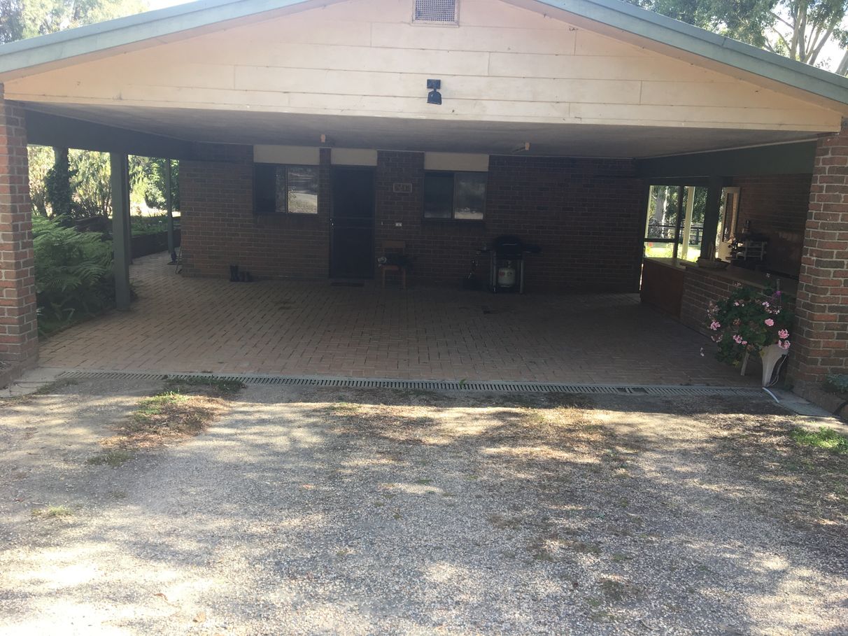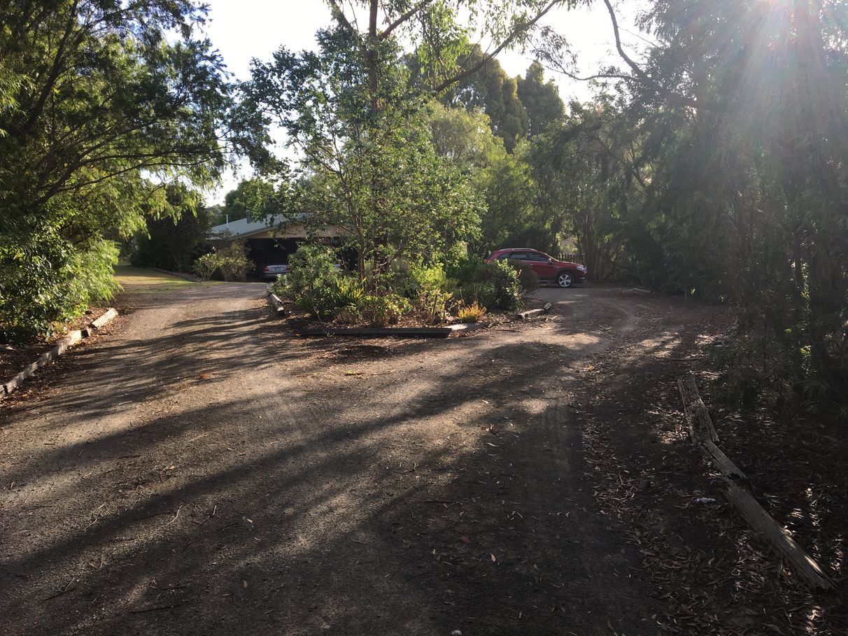At the end of the tree-lined drive entering the property there is a large double entrance shed, which has shelving around the sides for storage. There is a covered area at the back of the house, on the side is a lush, green fernery, shade house with a fish pond in the centre. There is room to park two or three vehicles in the front and a bench area with sink and fridge space, well organized for outdoor entertaining.