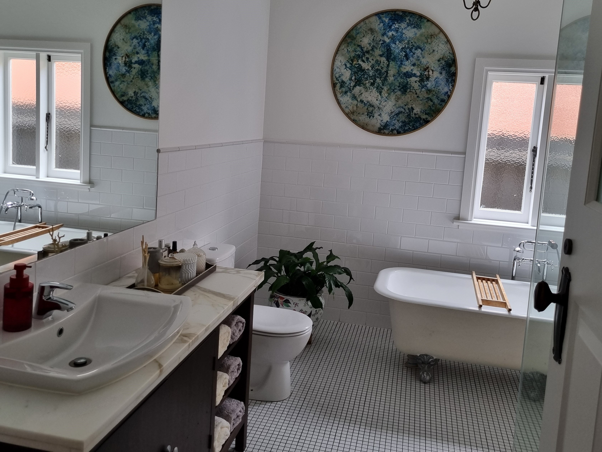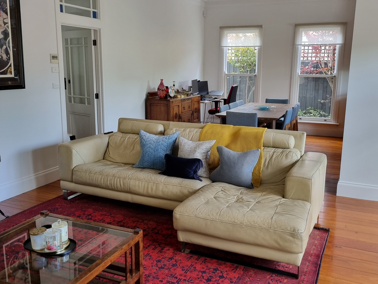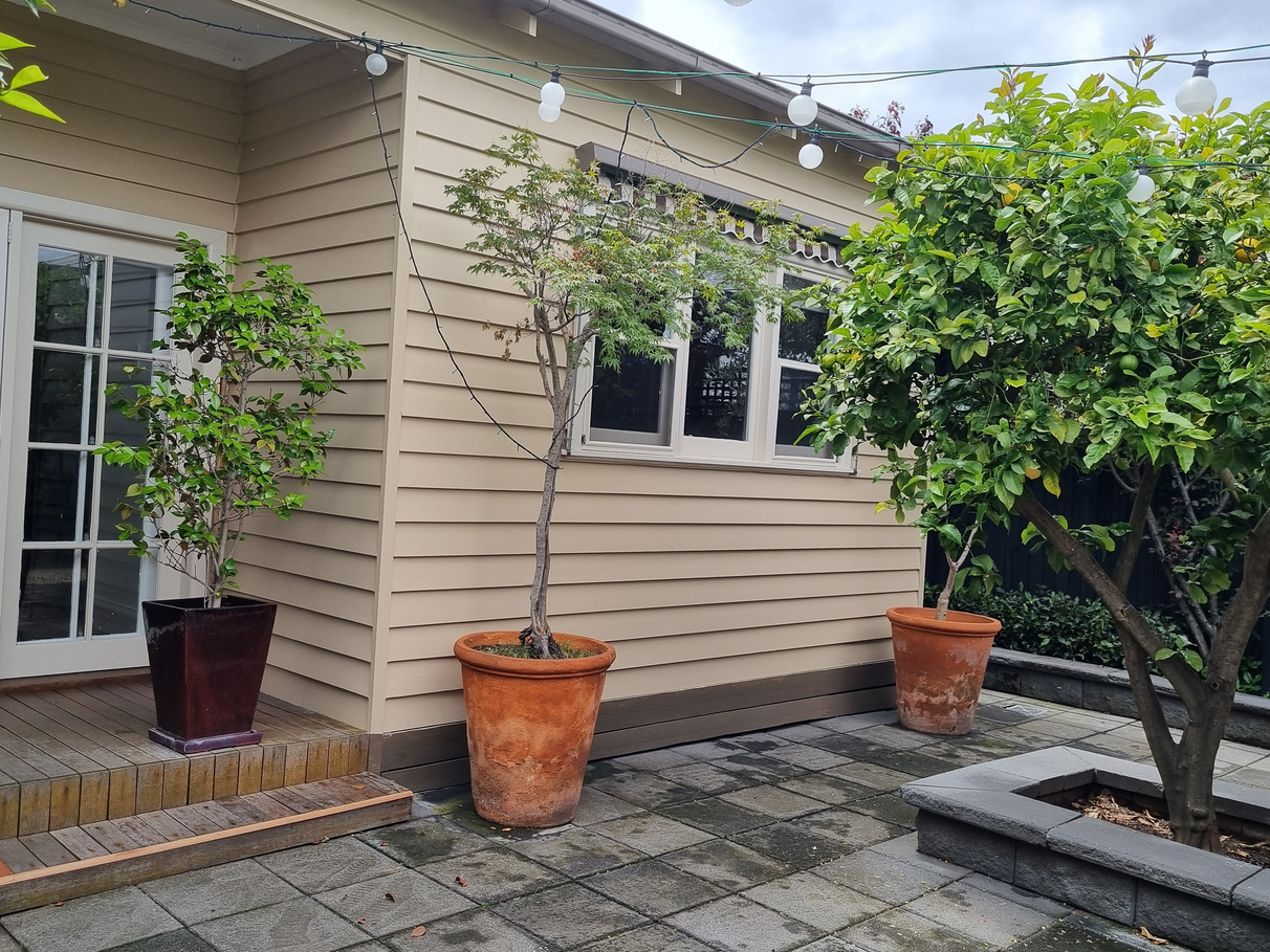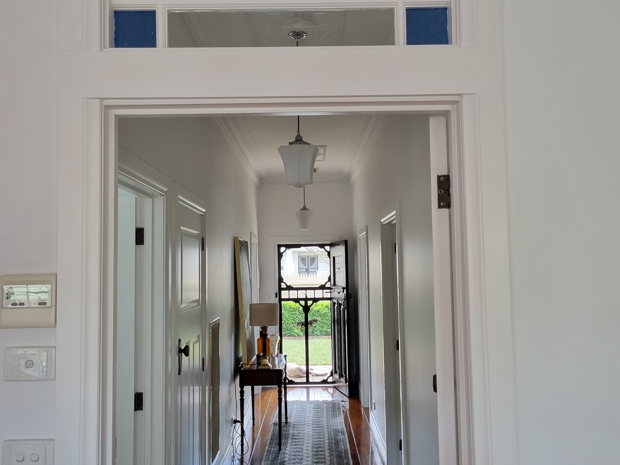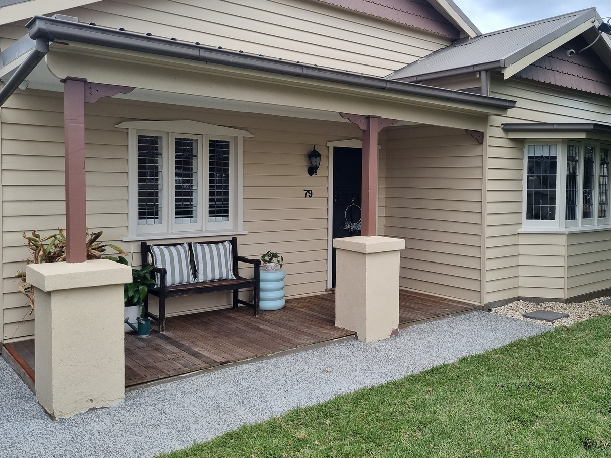 Steeped in timeless allure yet thoughtfully modernised for contemporary living, the home welcomes you with a charming hallway that features soaring ceilings, intricate decorative cornices, and the warm embrace of polished timber floorboards. Sunlight streams through double-hung windows, illuminating the original stained-glass accents that whisper stories of days gone by. The front half of the house presents generously proportioned bedrooms, each adorned with built-in wardrobes, making storage a breeze. The main bedroom is a personal sanctuary, complete with a luxurious ensuite and a spacious walk-in wardrobe, while the main bathroom exudes classic elegance.