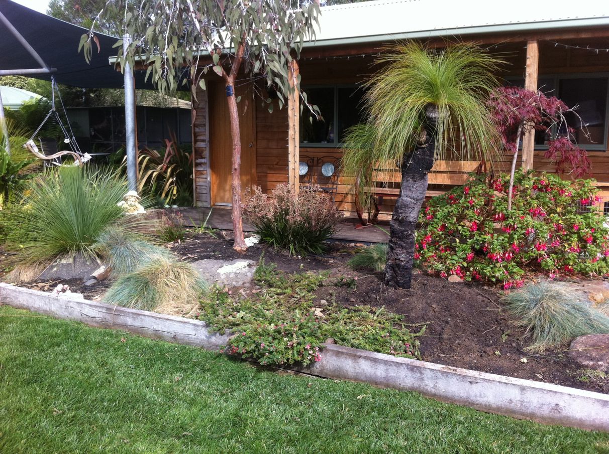 We have for sale a solid 3 bedroom home with ensuite on 1/2 an acre with manicured landscaped gardens featuring a 7 ton rock water feature & 3 raised vegie gardens as well as fruit trees all watered by automatic watering system . It has a real homily feel with well appointed modern kitchen with dishwasher built in robes in the 2 bedrooms with walk in robes & ensuite to the main. All the lights are led down lights or low energy globes with 1.5 KW solar system to off set electricity bills enjoying 62 cent selling tariff. Heating is done by zoned central heating as well as gas log fire all natural gas plus R/C air con in main living & kitchen area Outside is a full length 4 meter wide veranda with timber deck which faces north with swim spa semi enclosed with glass with surround sound & TV .The rock water feature is a highlight and the soothing sound of running water puts you at ease There is a bungalow 3.6 x 8 meters used as sewing room with r/c aircon. There is also a huge barn style shed 14 x 11 meters with workshop, toilet, kitchenette, wood heater, TV & mezzanine floor over workshop. The property also has a bore which is shared with 2 neighbours so plenty of water for lawn & gardens. There is 5 water tanks as well as town water so water restrictions are no issue here. We have remote control gates and shed doors so coming & going is a breeze. Please come and have a look you will be impressed.