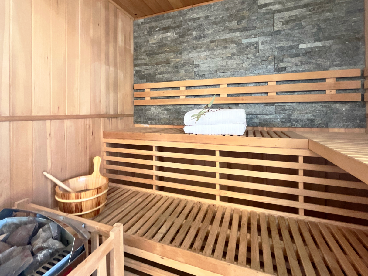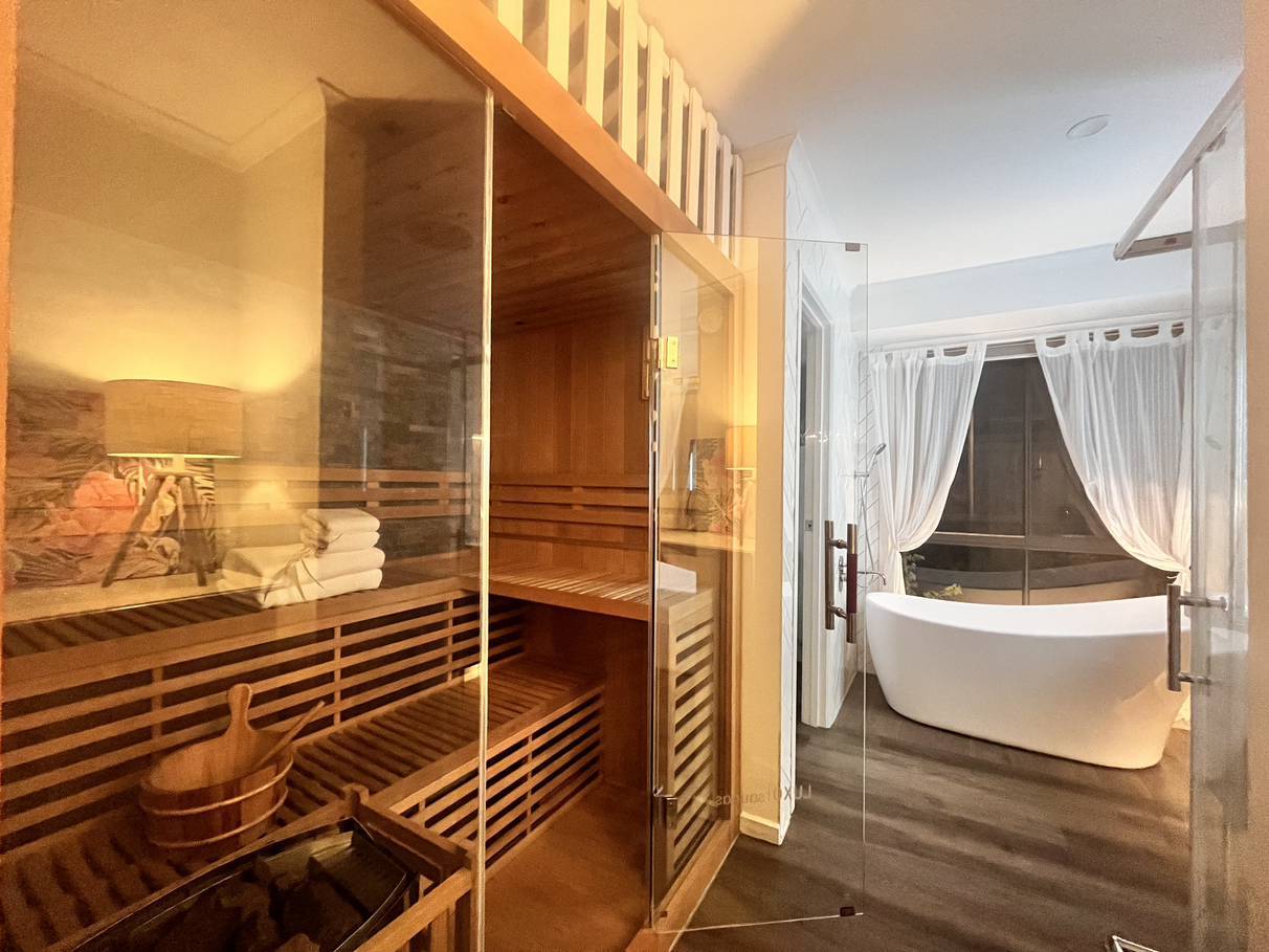 Enjoy your own private retreat with 3 Person Finnish Indoor Traditional Steam Sauna, plus spa-style bathrooms with soft LED lighting — perfect for relaxing at the end of the day.