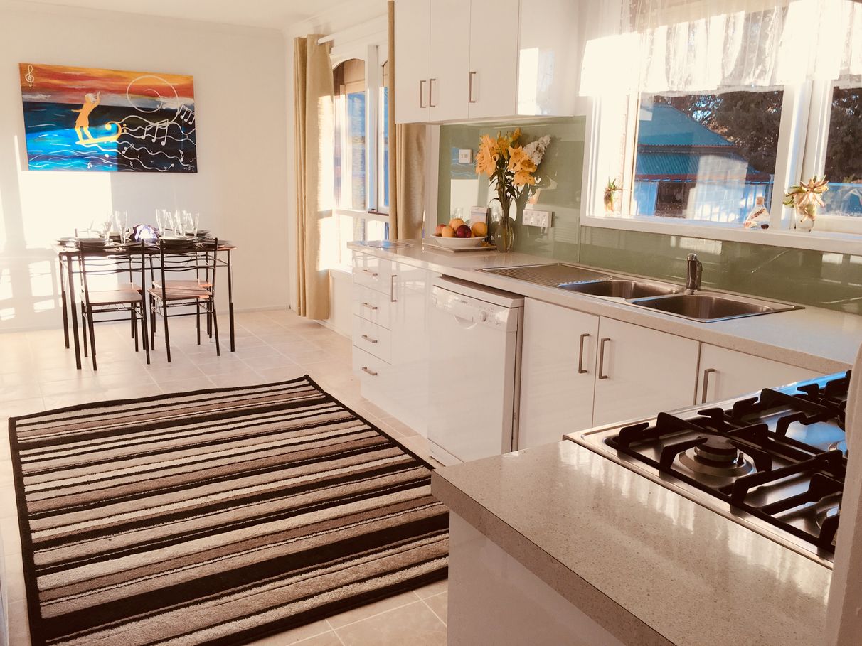 Fantastic living spaces including a large lounge and dining room with a stylish brick feature wall and a great servery window through to the spacious, open plan meals. The impressive gourmet kitchen comes equipped with a 900mm freestanding oven, gas cooktop, range hood, dishwasher, 40mm stone benchtops, great storage and a stylish, brand-new glass splashback.
