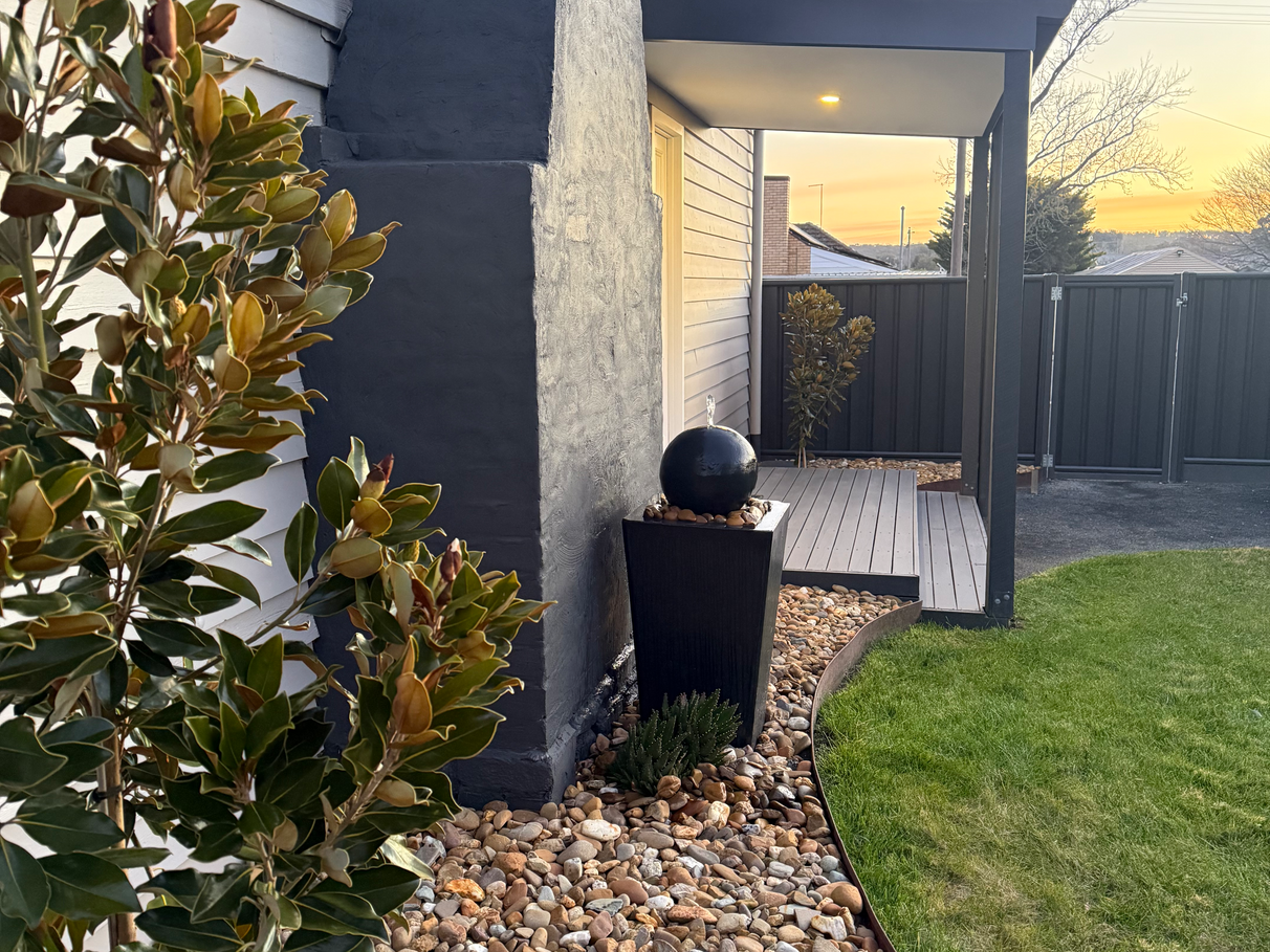 Enjoy privacy & feel secure in the fully lockable backyard- featuring fire pit, water feature and entertaining shed.