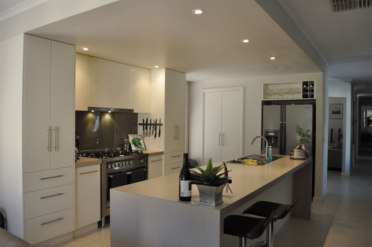 Architecturally designed and purpose built for relaxed easy living this home features 2 living areas, meals area with pendant lighting. Fully equipped kitchen with SS dishwasher and a 900mm chefs oven. The fridge space is fully plumbed to allow for filtered ice/water dispenser, with purpose built wine rack & wine glass storage overhead. Extra long Island bench top with under bench microwave space and ample storage, including pot draws and breamfast nook.